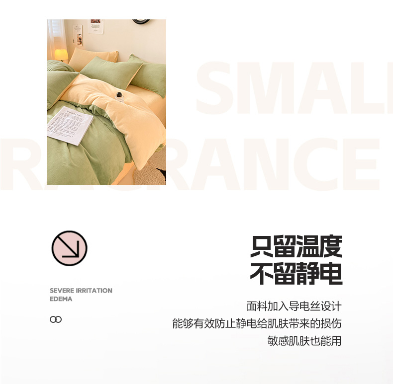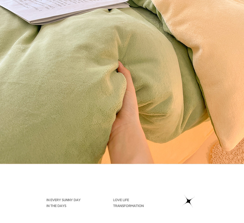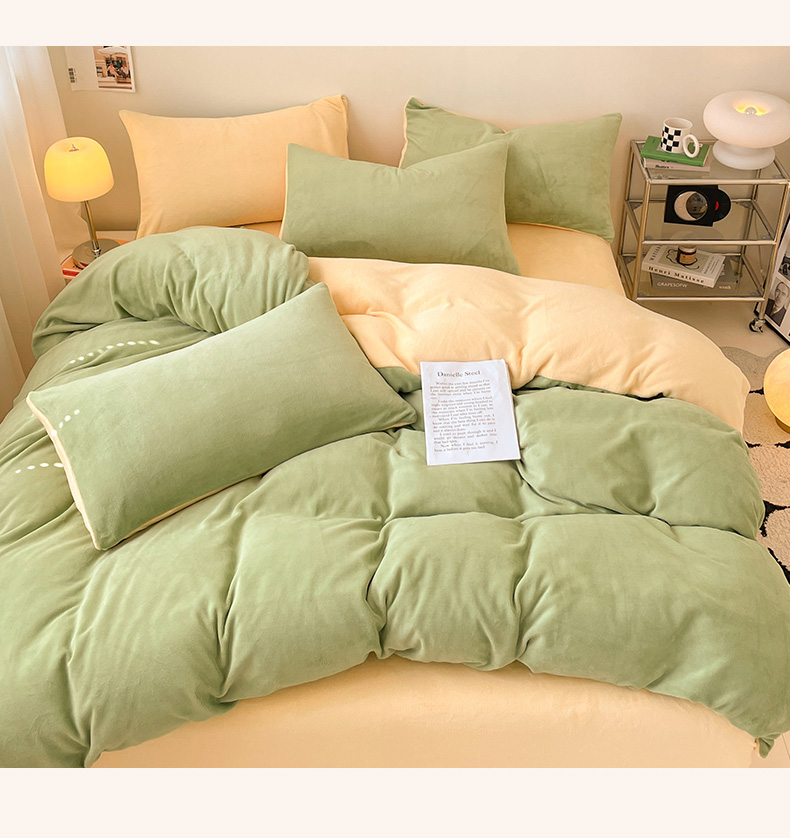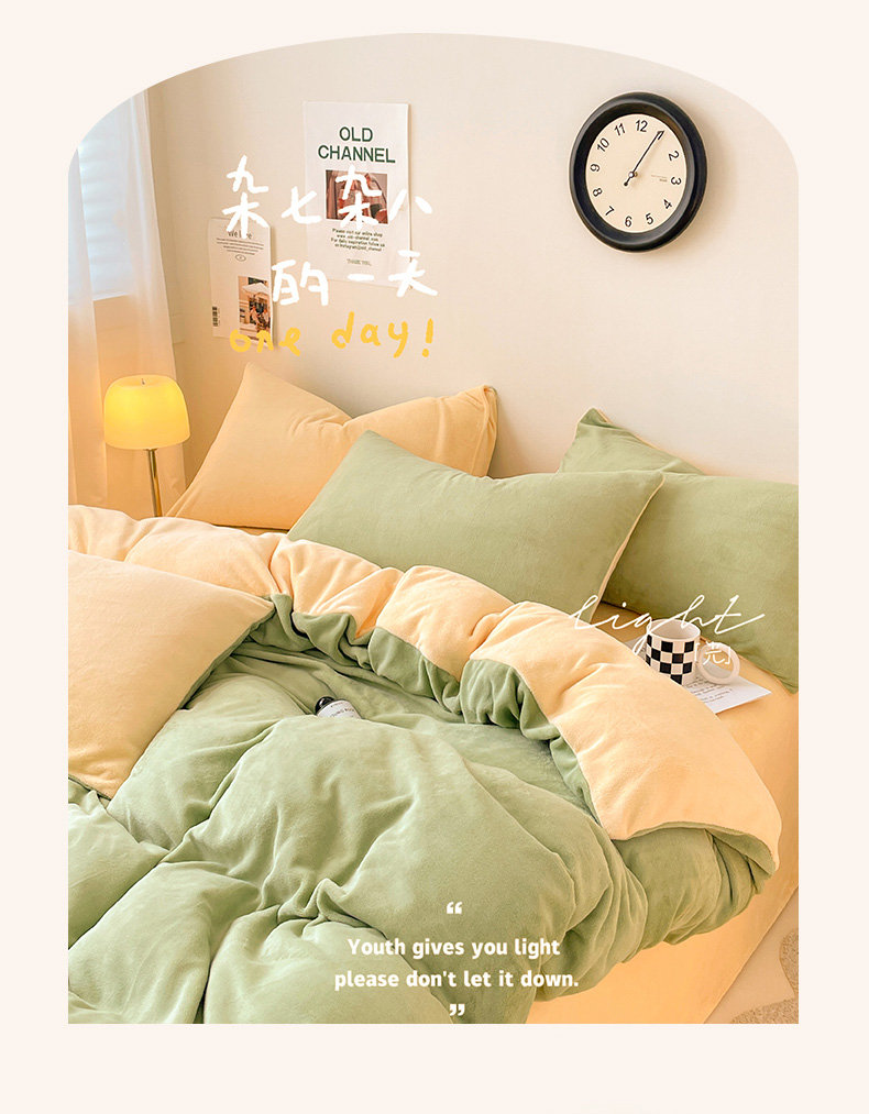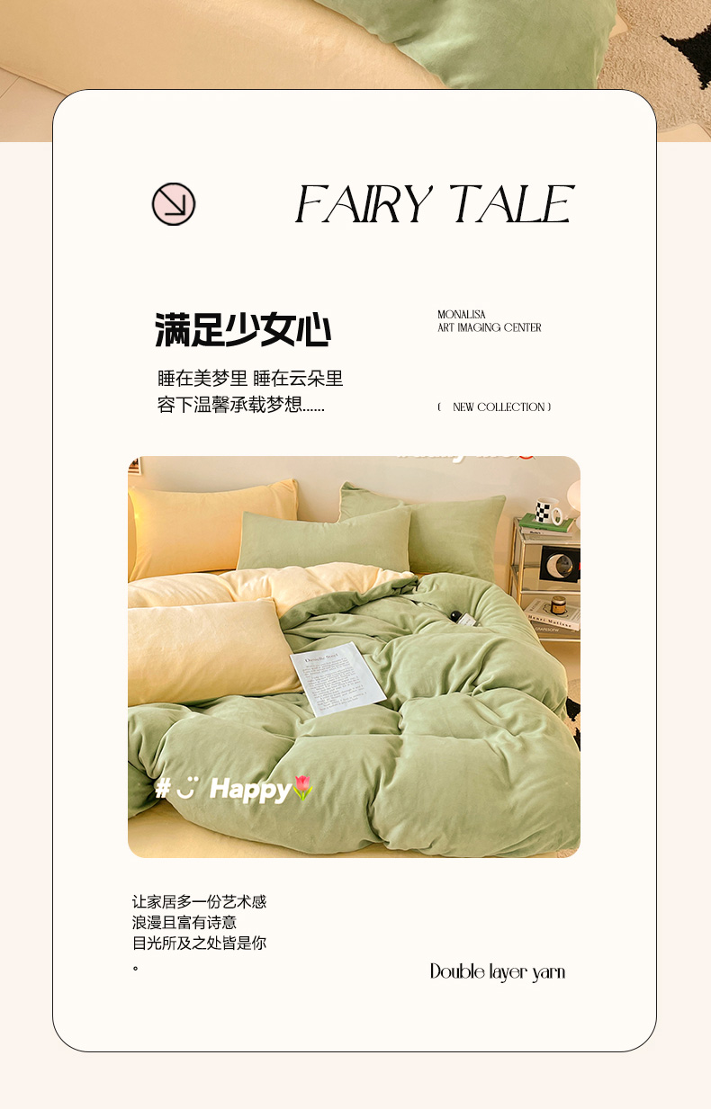 当前位置: 91家纺网 > 商品网购 > 床品套件 > 四件套 > 牛奶绒四件套 > 眠帛家居 2023新款加厚牛奶绒双拼四件套 果绿-奶黄