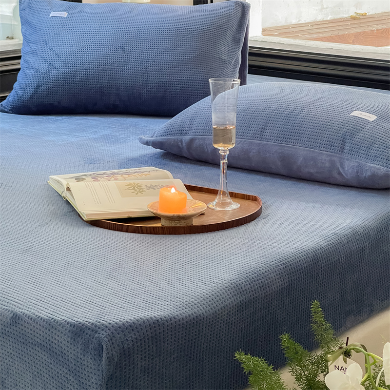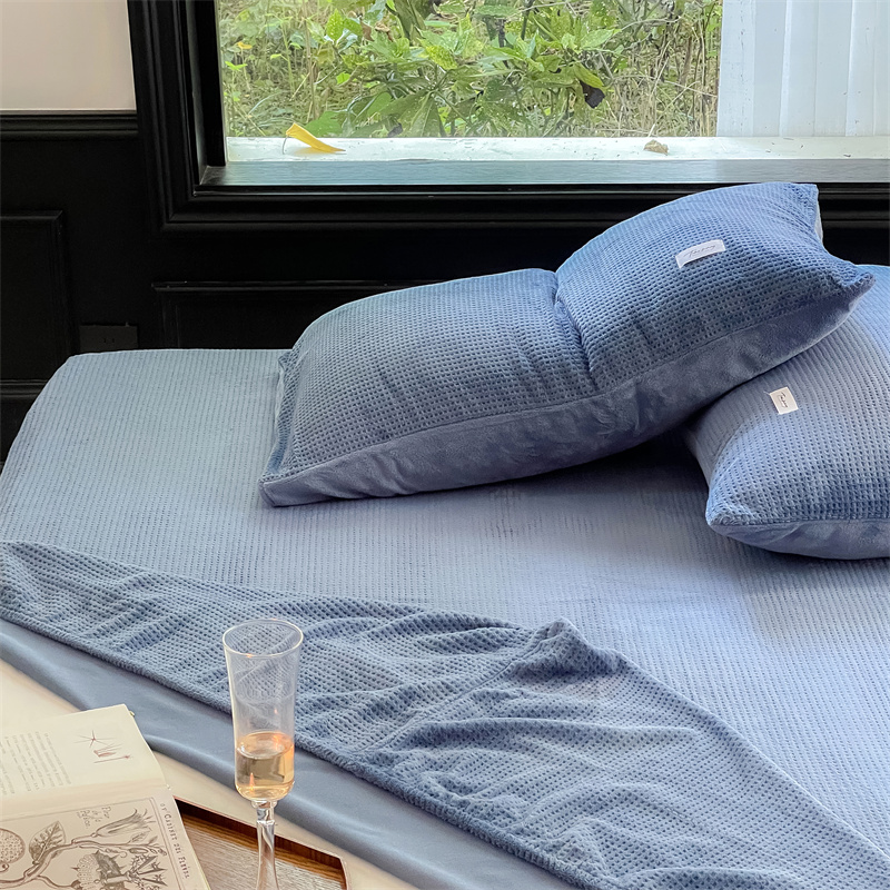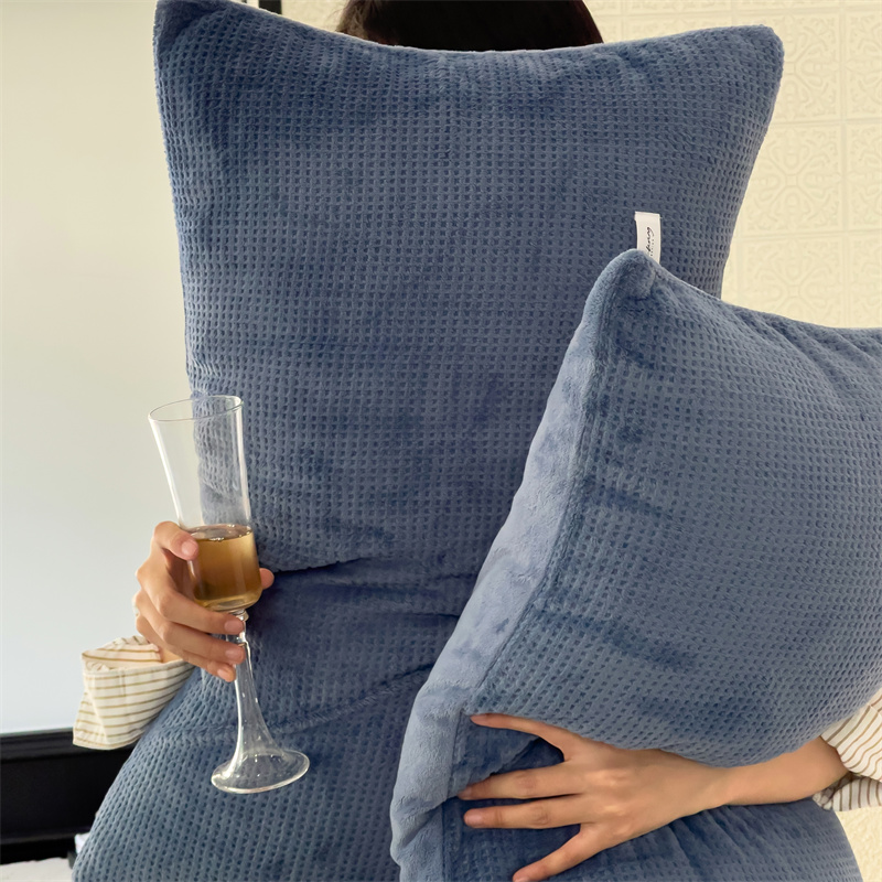 商品名称:时光里 2023新款全消光华夫格绒枕套 马耳他蓝