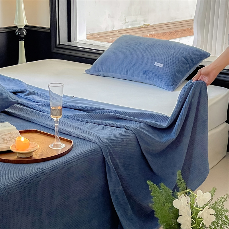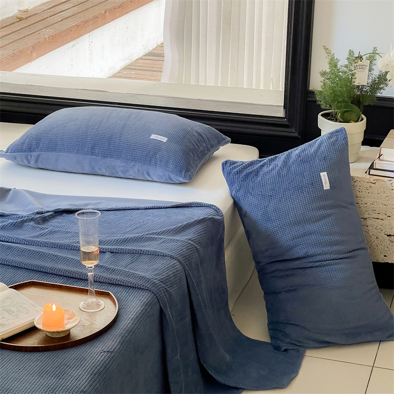 时光里 2023新款全消光华夫格绒枕套 马耳他蓝