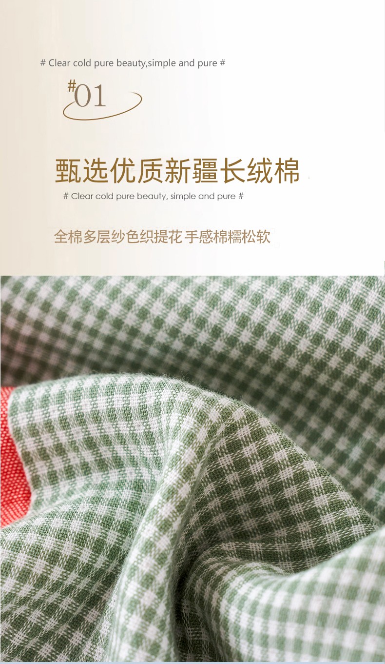 (总)棠薇家纺 2025新款A类加厚八层纯棉纱布小清新枕巾,格子乐园,花束咖边,时尚圆点,小花绿,小文艺粉,小文艺绿