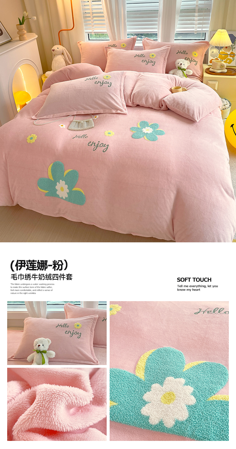 凡客家居 2023新款毛巾绣牛奶绒四件套 伊莲娜-粉