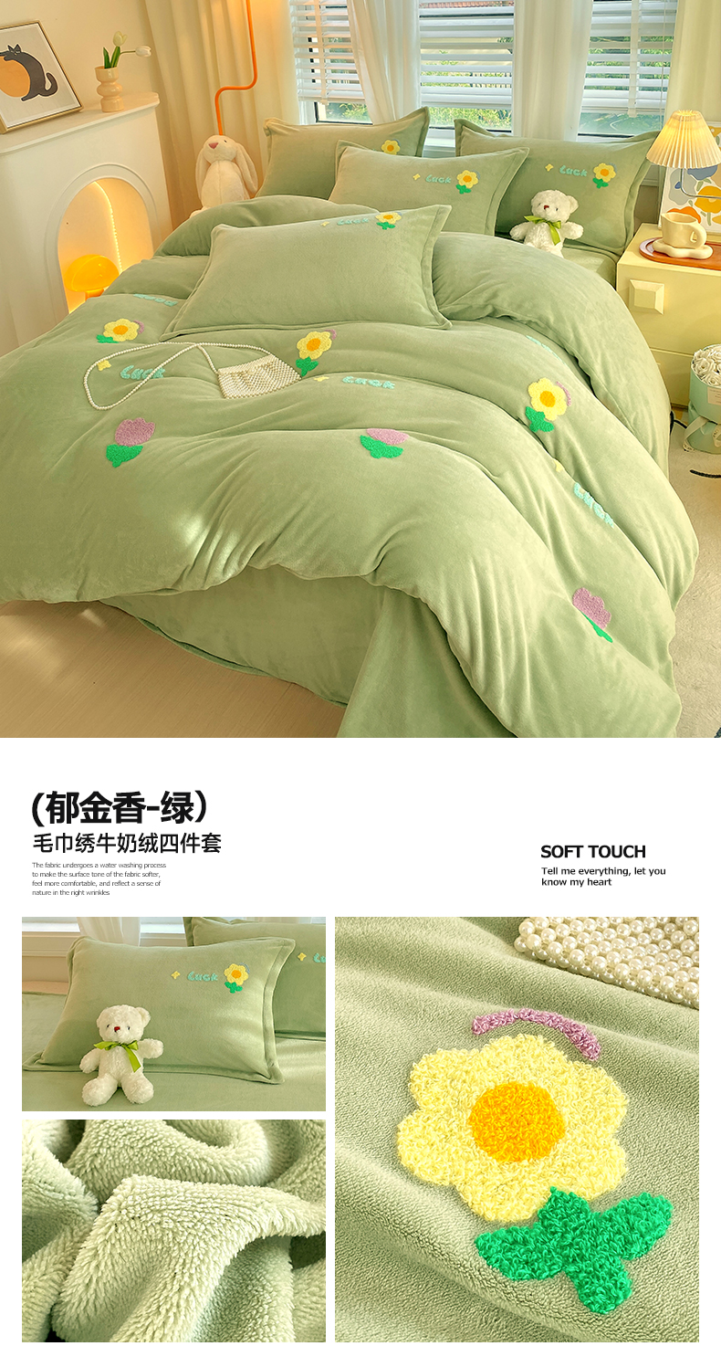 凡客家居 2023新款毛巾绣牛奶绒四件套 郁金香-绿