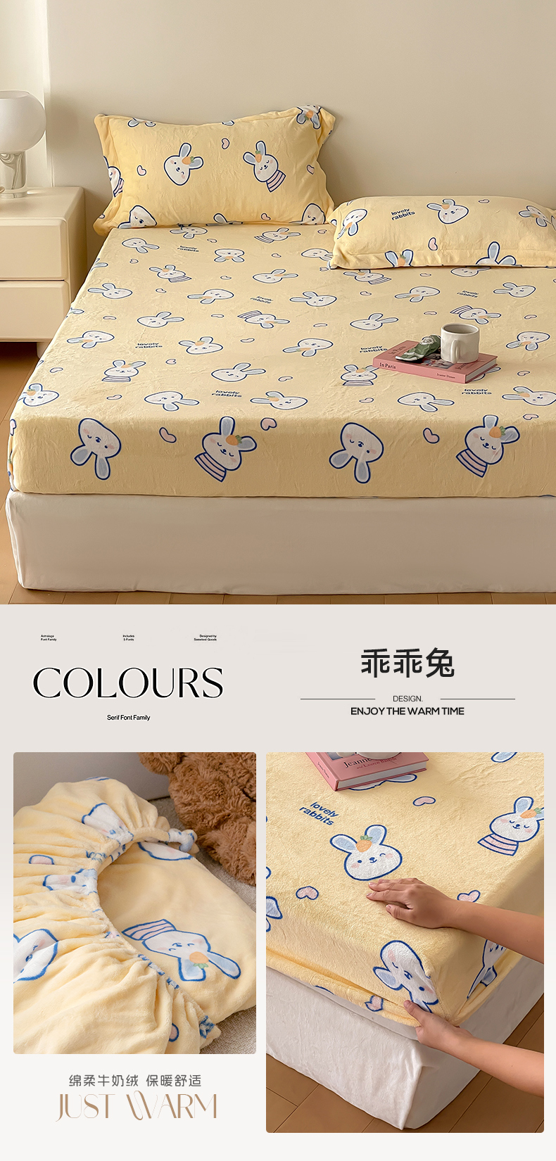 商品名称:时光里 2023新款全消光加厚牛奶绒印花单品单床笠 乖乖兔