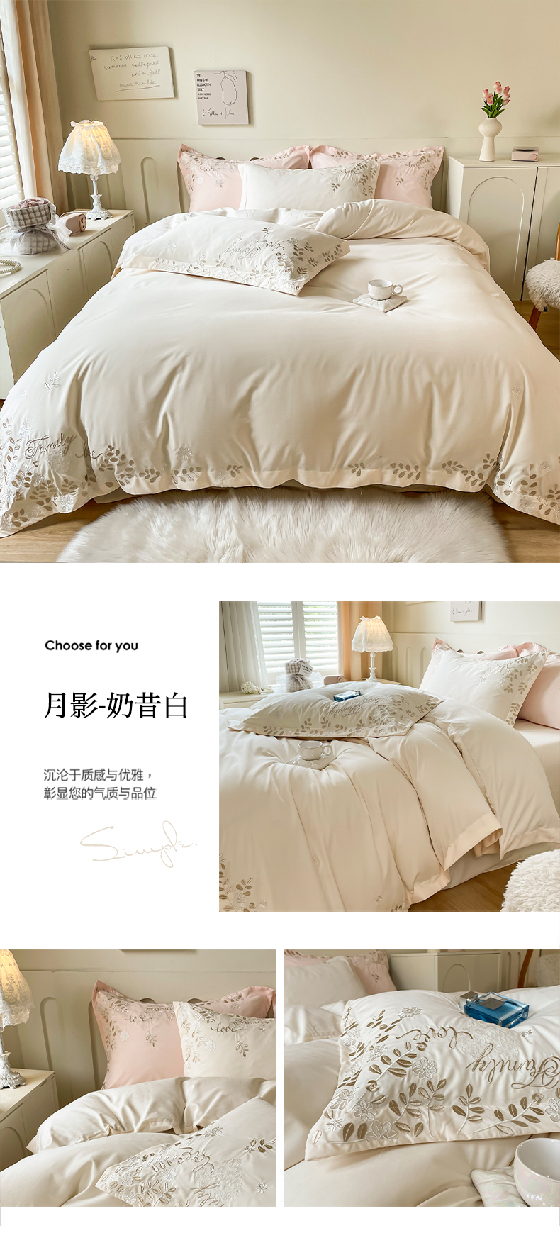 布可 2025秋冬新款云朵棉轻奢精密刺绣四件套-月影 月影-奶昔白