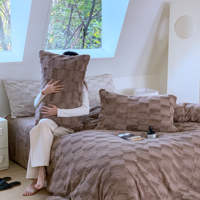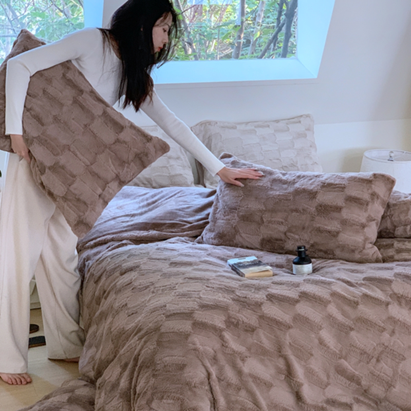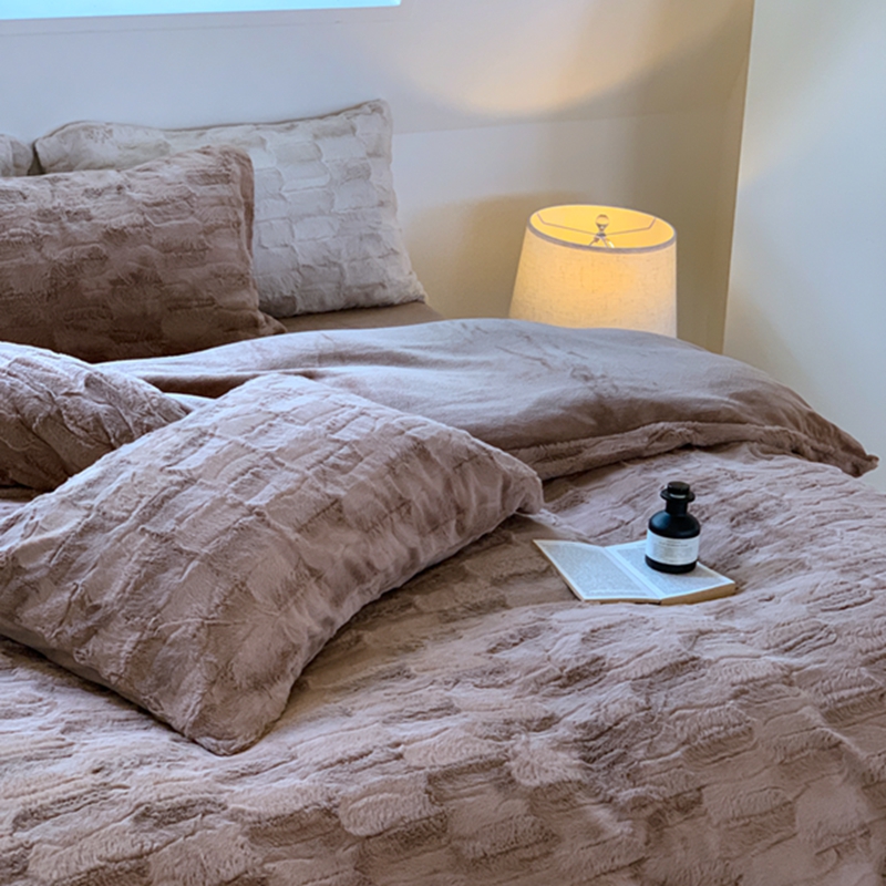 商品名称:昔可家纺 2023兔兔绒四件套 格调咖