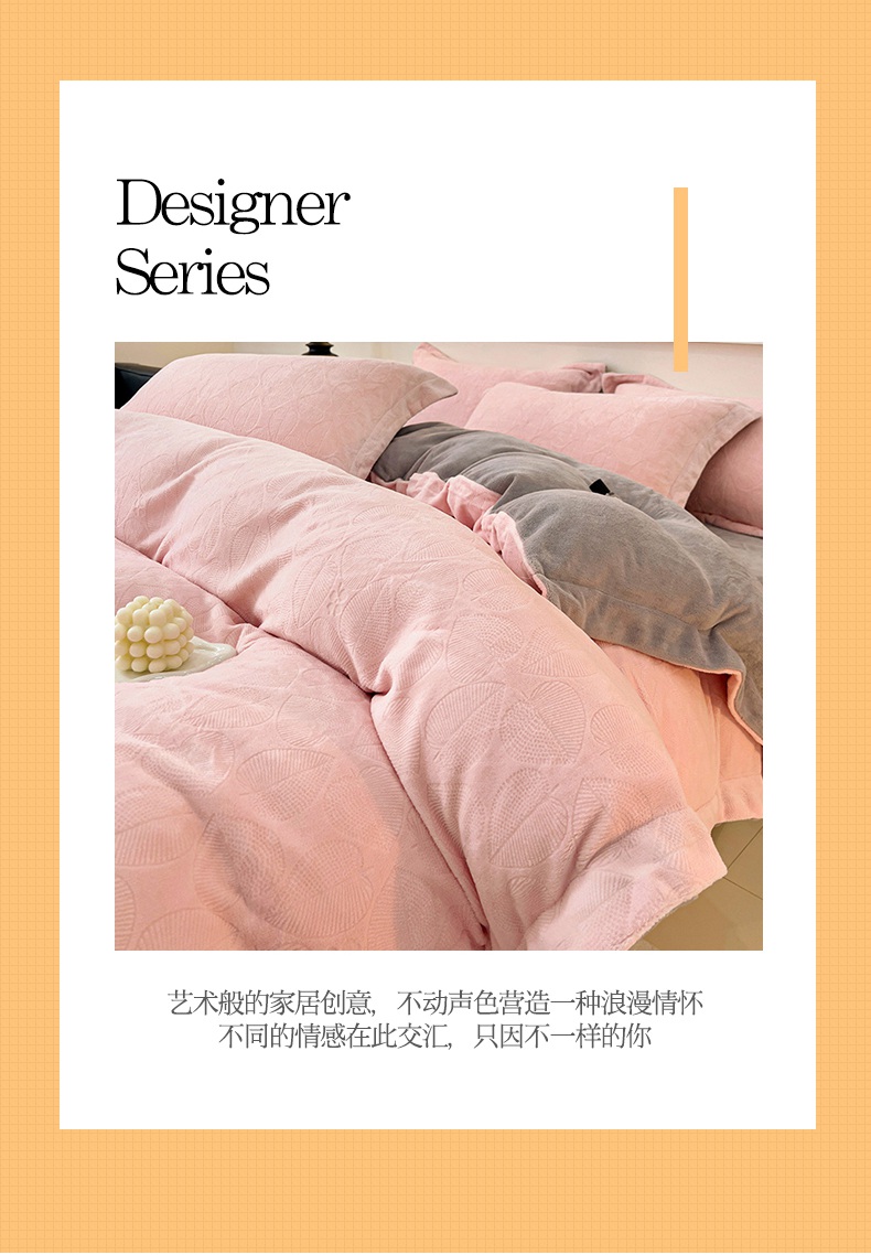 米奈家居 2024新款A类高克重牛奶绒四件套-瑞利 粉拼灰