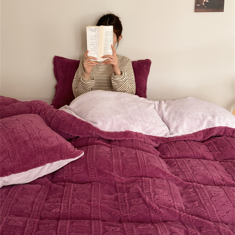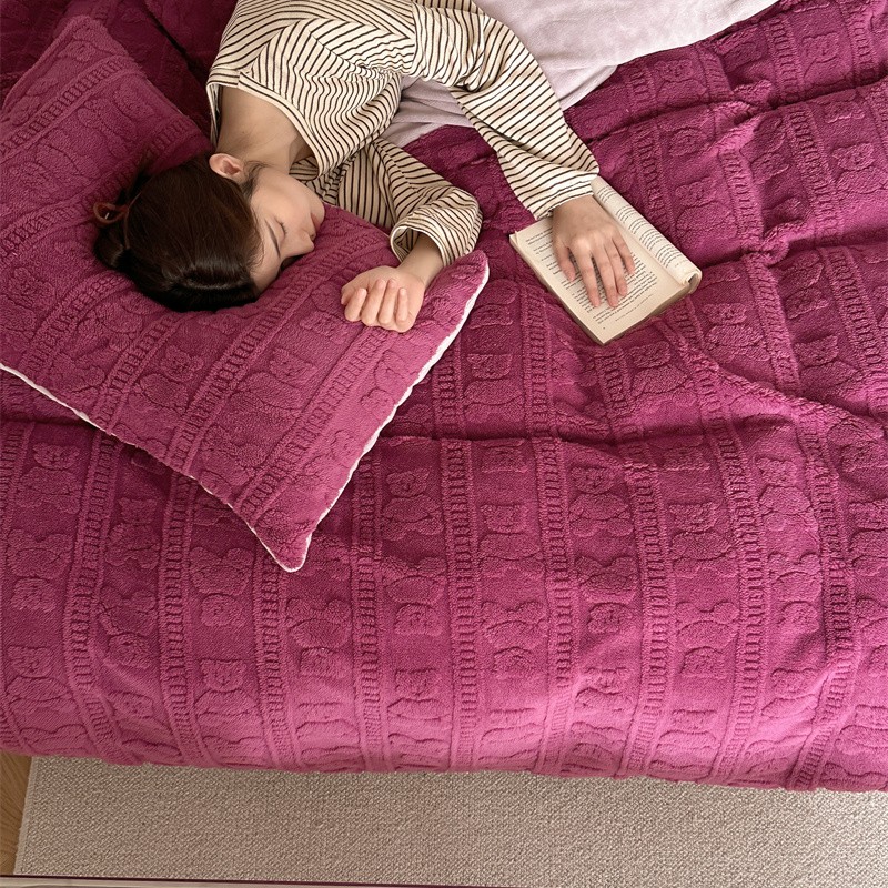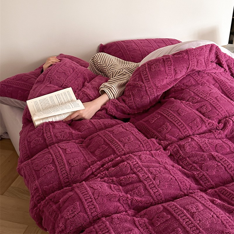 商品名称:棉眠 2023新款冬日熊提花牛奶绒系列四件套 树莓熊