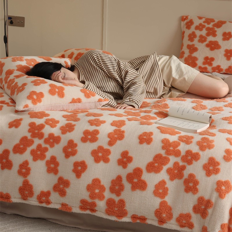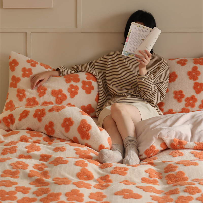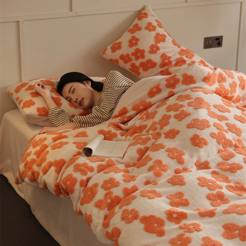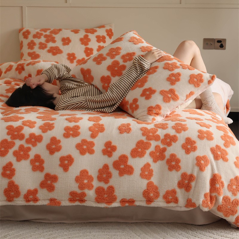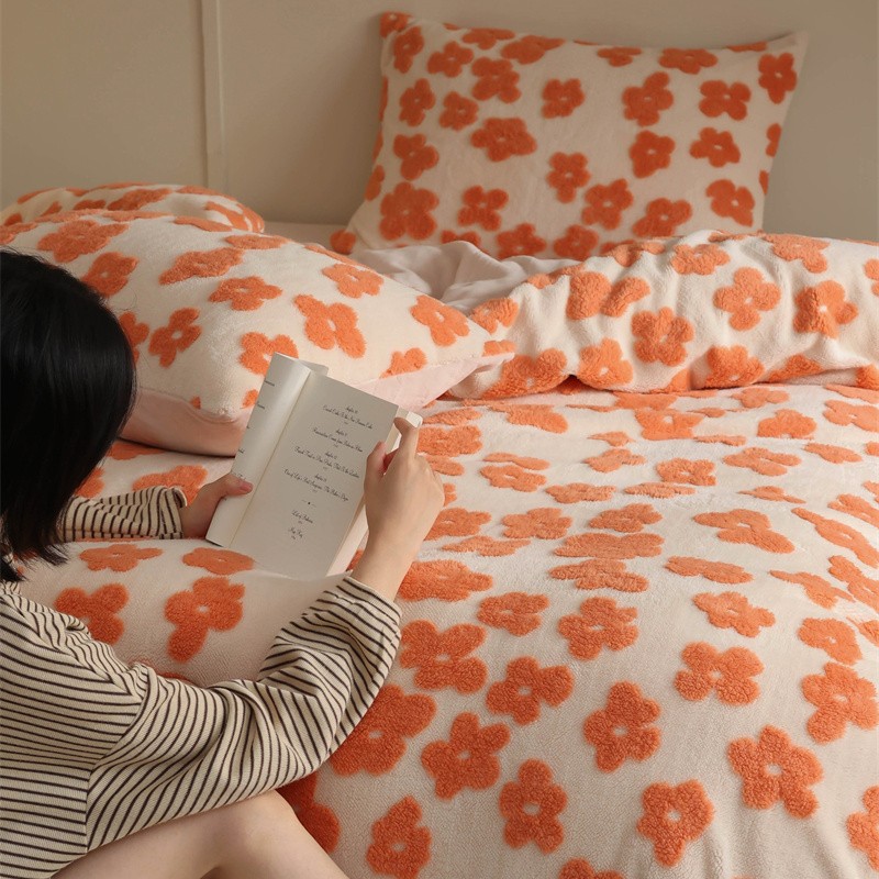 商品名称:棉眠 2023新款牛奶绒向阳系列四件套 点点-橘