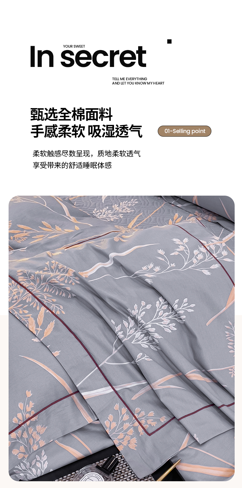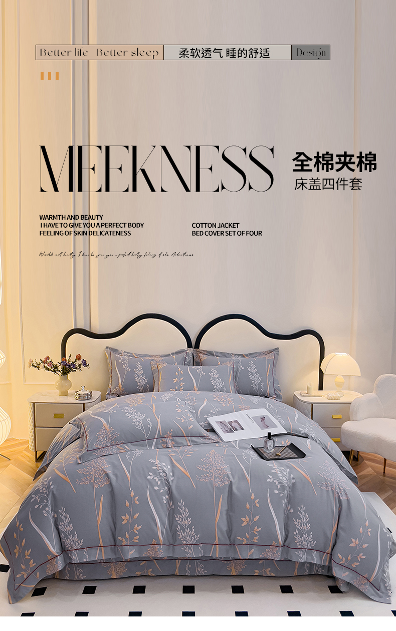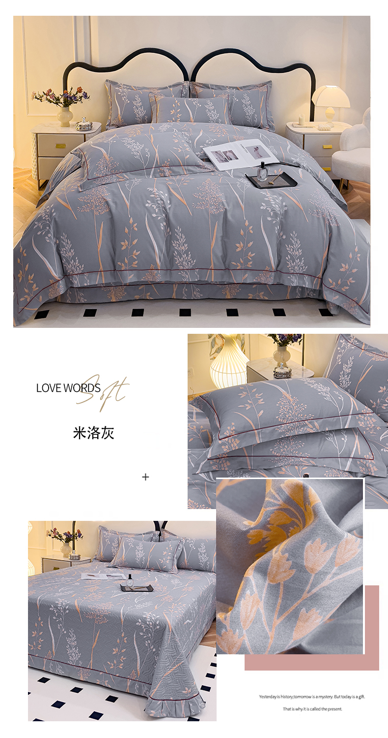 当前位置: 91家纺网 > 商品网购 > 床品套件 > 四件套 > 全棉普通四件套 > 小时代 2023新款全棉印花床盖四件套 米洛灰