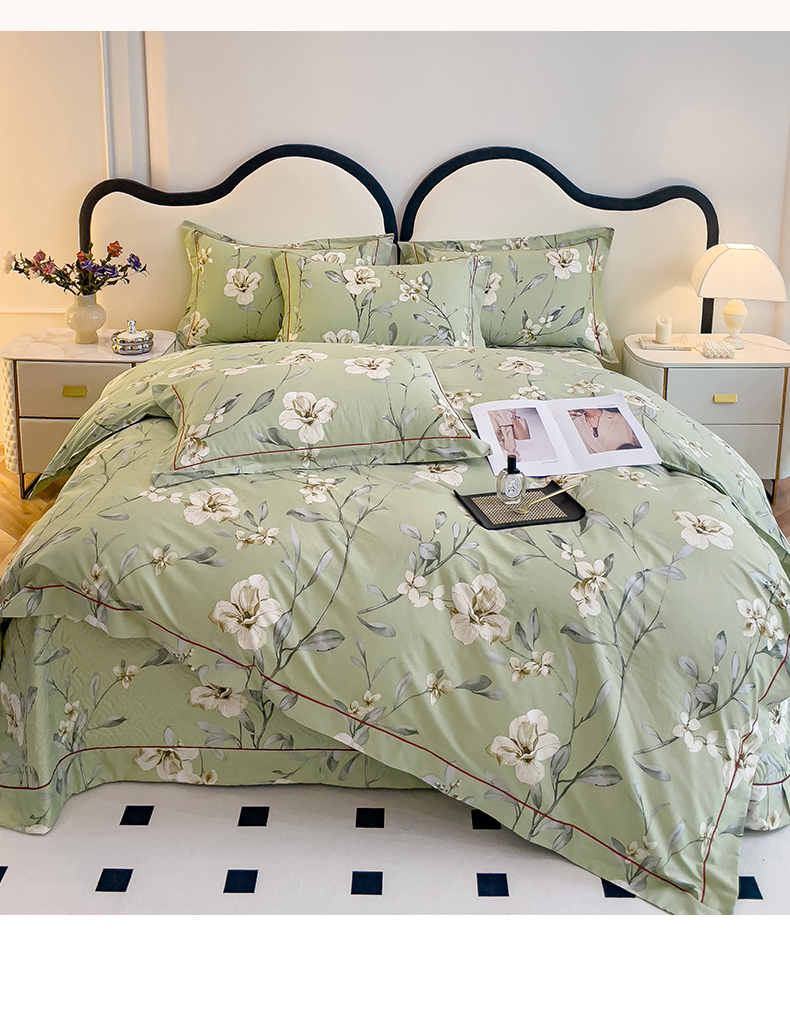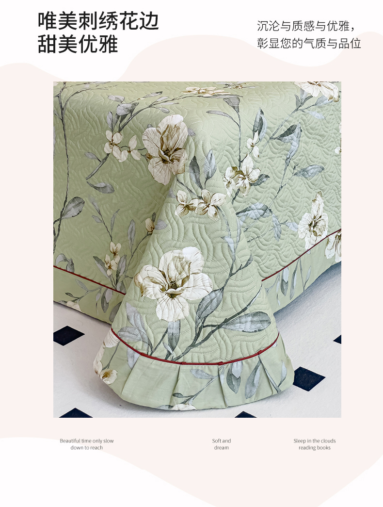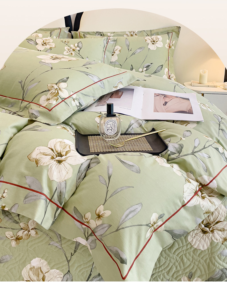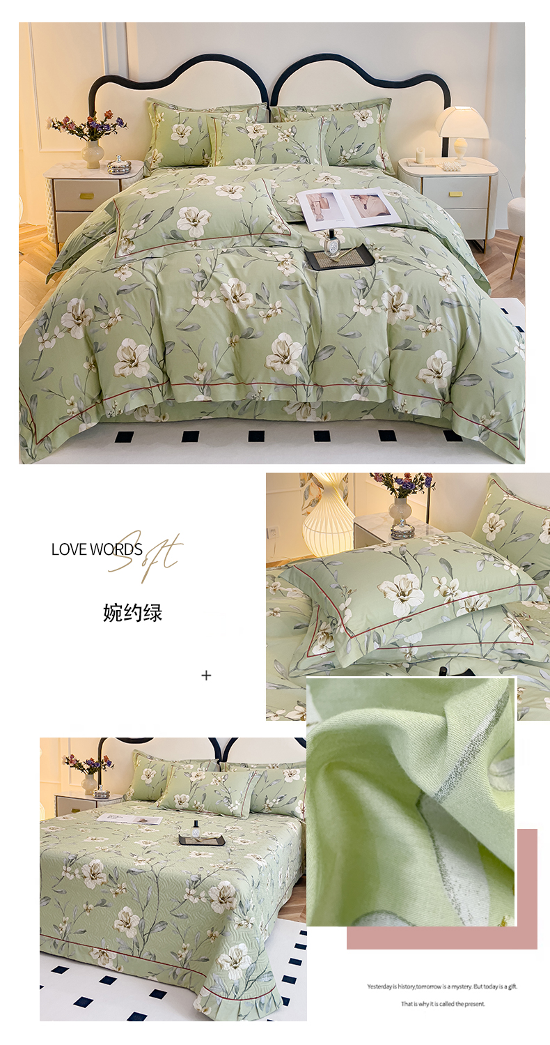 当前位置: 91家纺网 > 商品网购 > 床品套件 > 四件套 > 全棉普通四件套 > 小时代 2023新款全棉印花床盖四件套 婉约绿