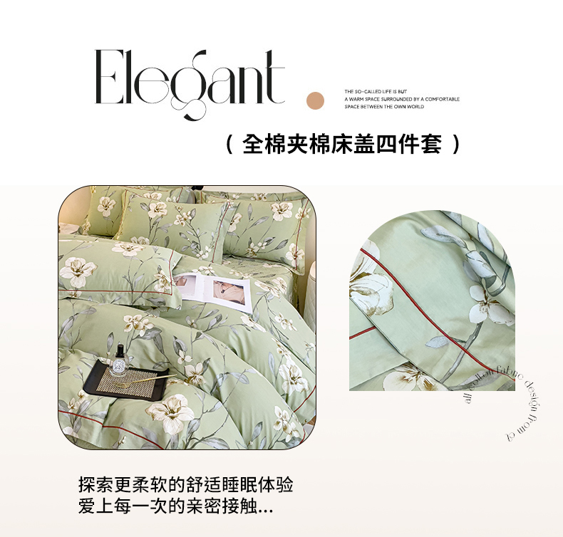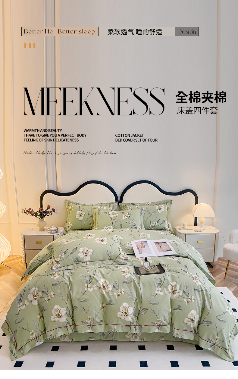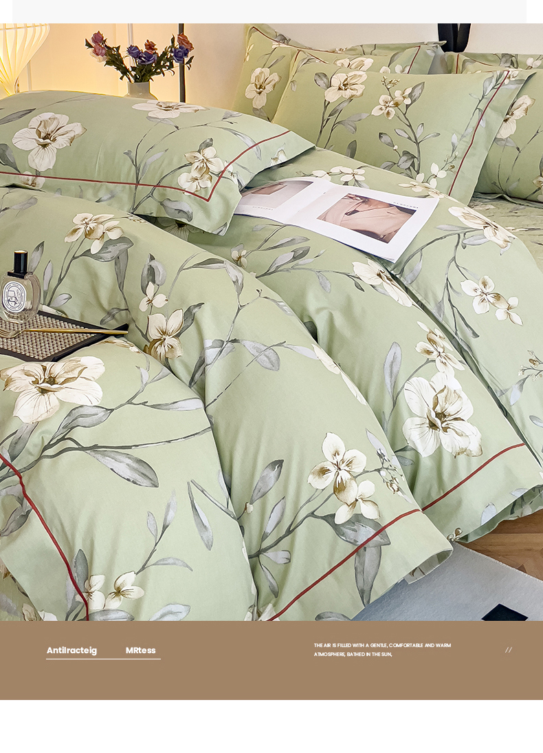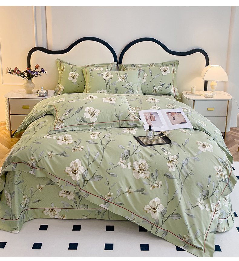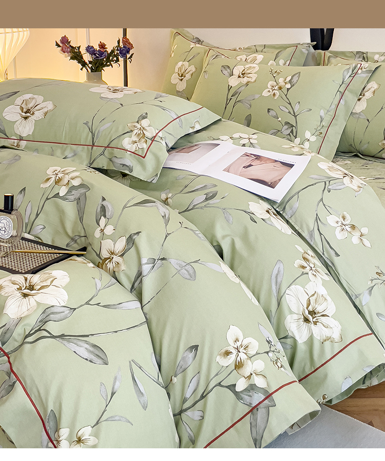 当前位置: 91家纺网 > 商品网购 > 床品套件 > 四件套 > 全棉普通四件套 > 小时代 2023新款全棉印花床盖四件套 婉约绿