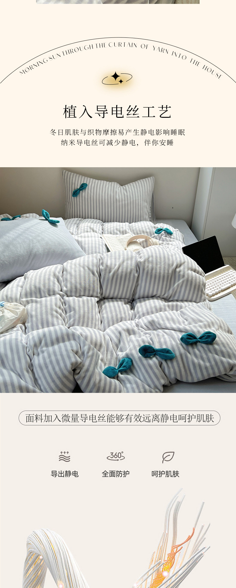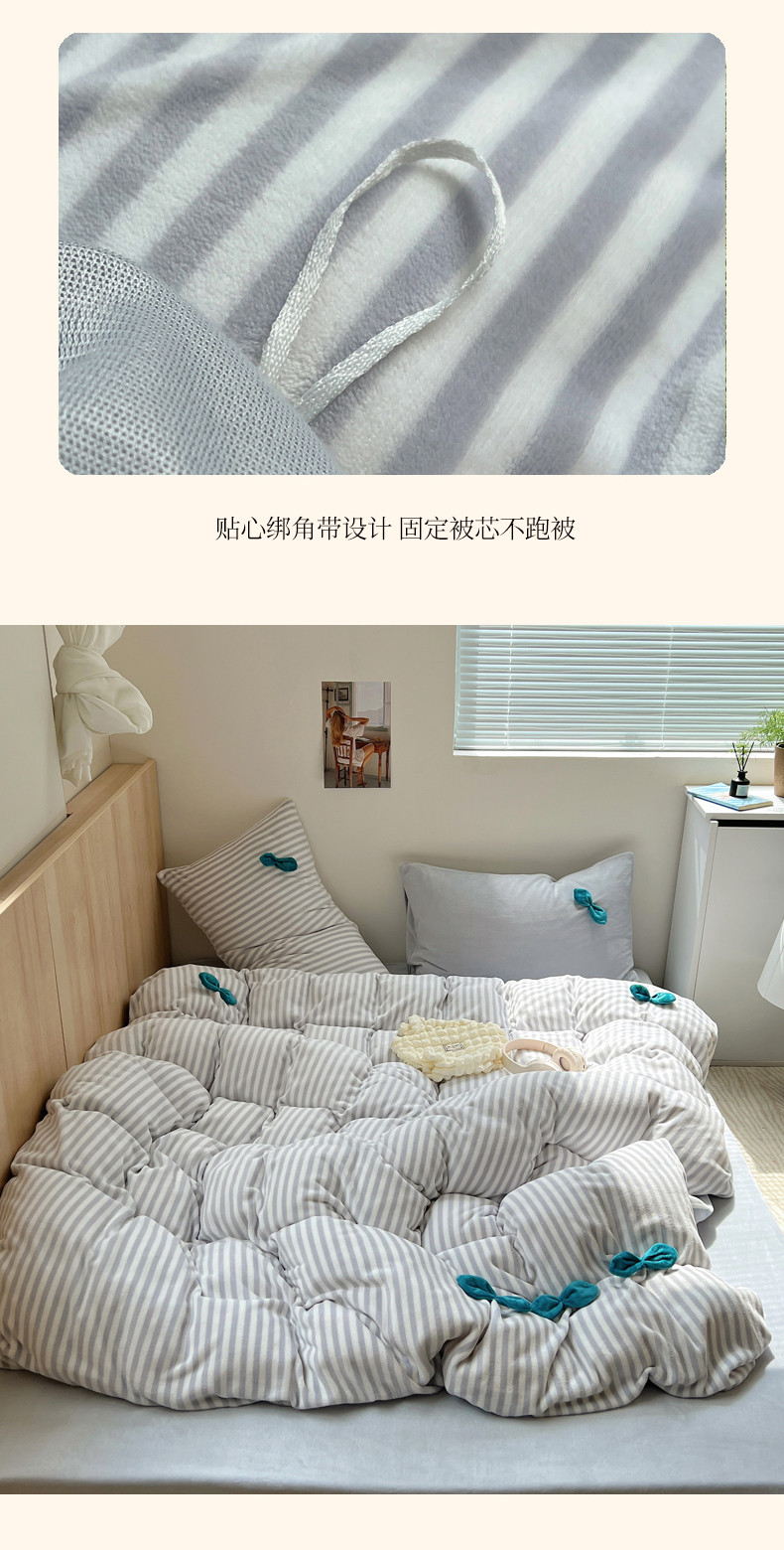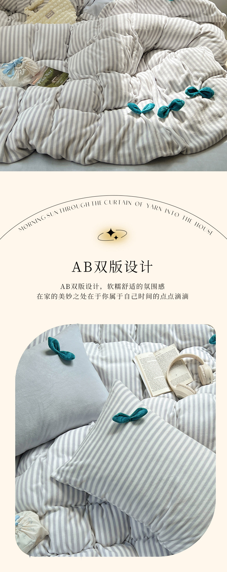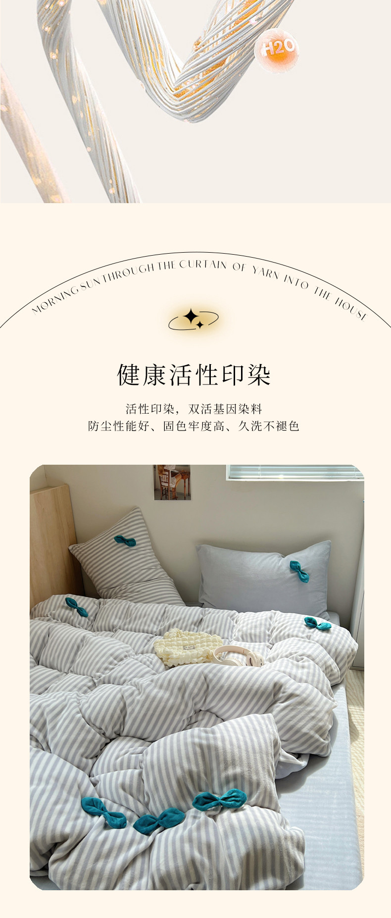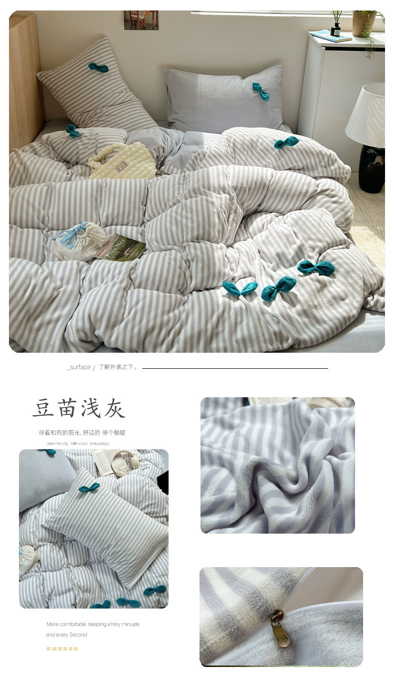 商品名称:三朵家纺 2023新款立体豆苗无印风高克重牛奶绒四件套 豆苗浅灰
