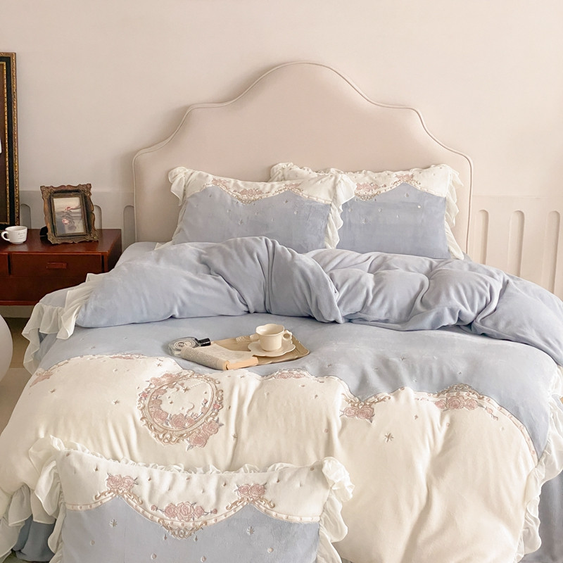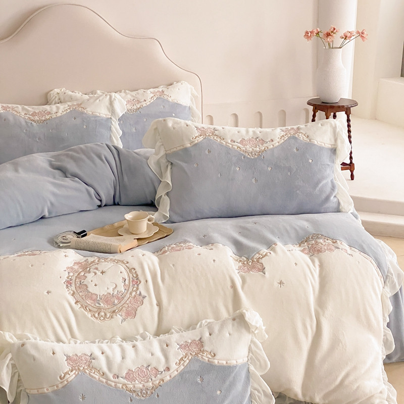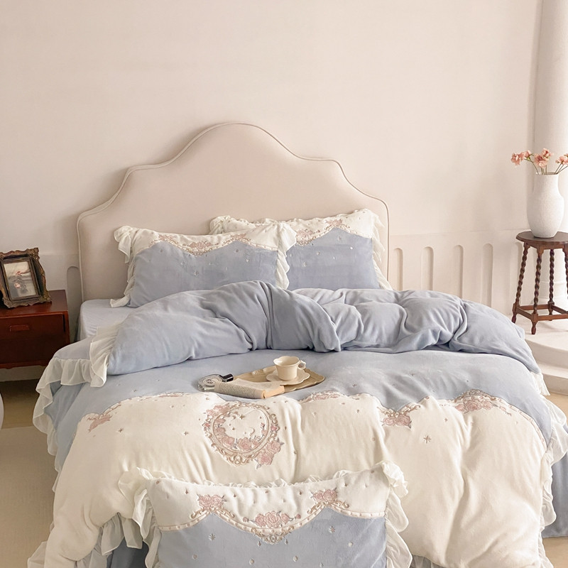 馨蕊家居 2023新款双层纱荷叶边刺绣四件套-伊芙琳 伊芙琳-北卡蓝