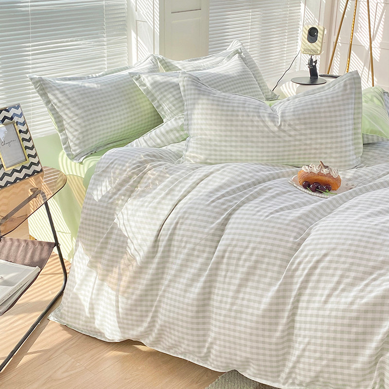 商品名称:楠沐 2025年新款亲肤水洗棉磨毛单被套 小绿格