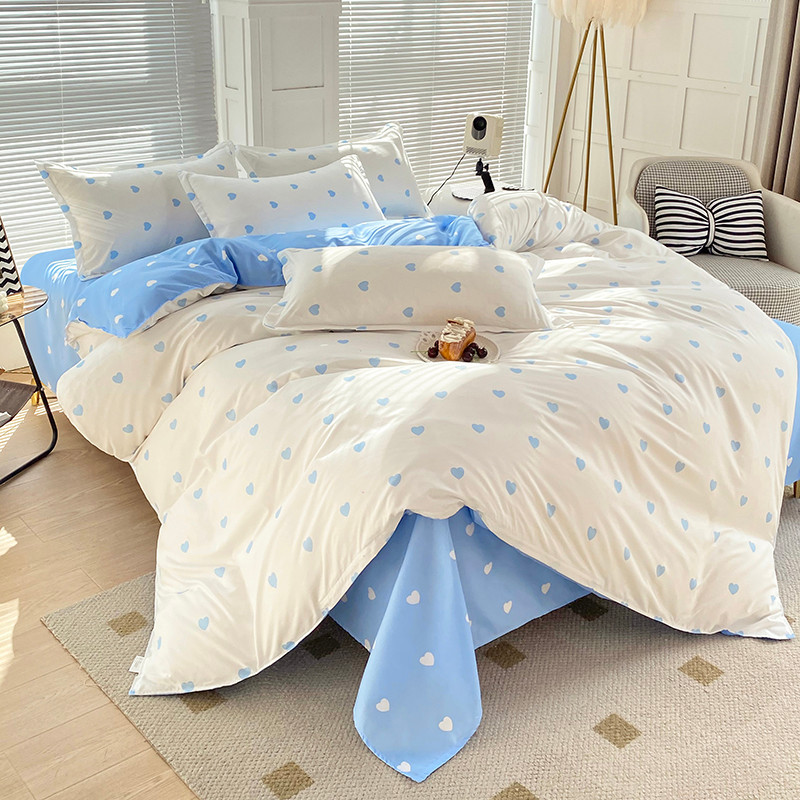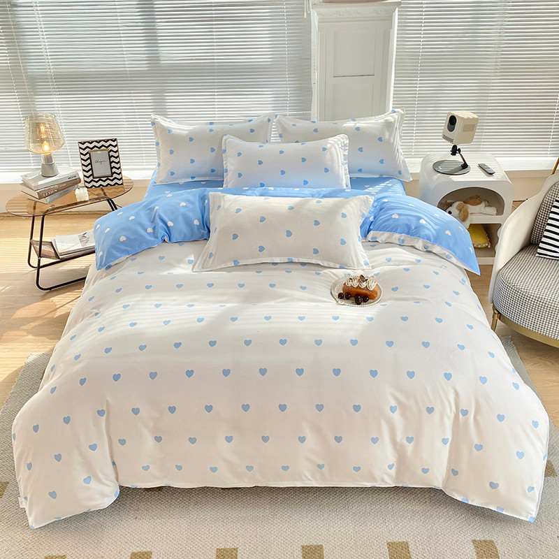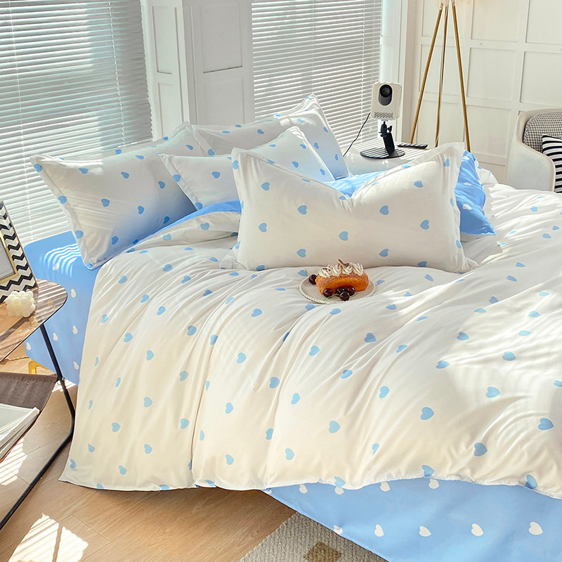(总)楠沐家纺 2025年新款无印风学生印花四件套芦荟棉水洗棉,彩色波点,觅遇,晴空蓝格,亚麻灰格,烟雾灰格,英伦蓝格