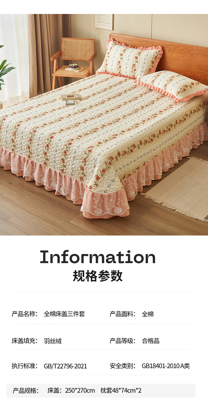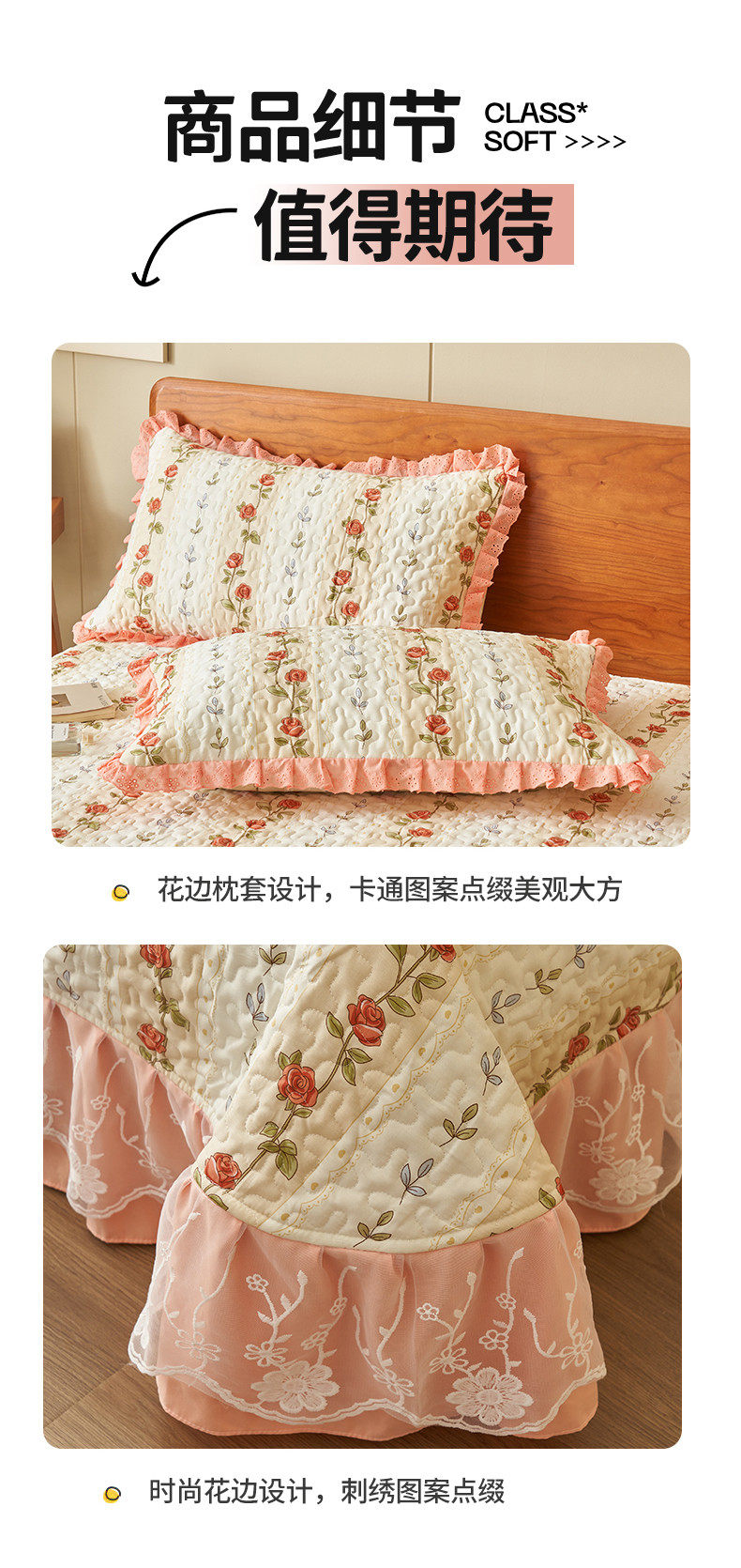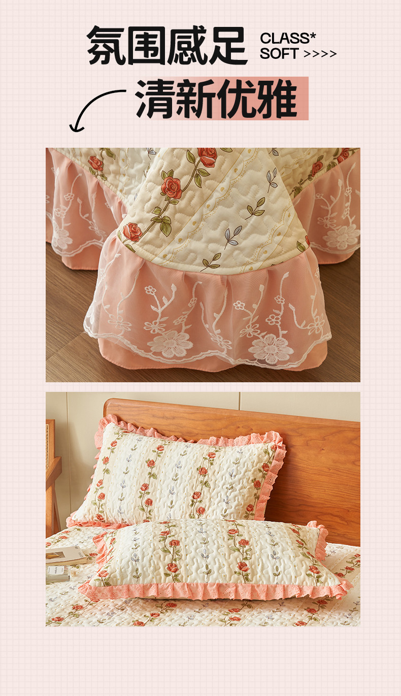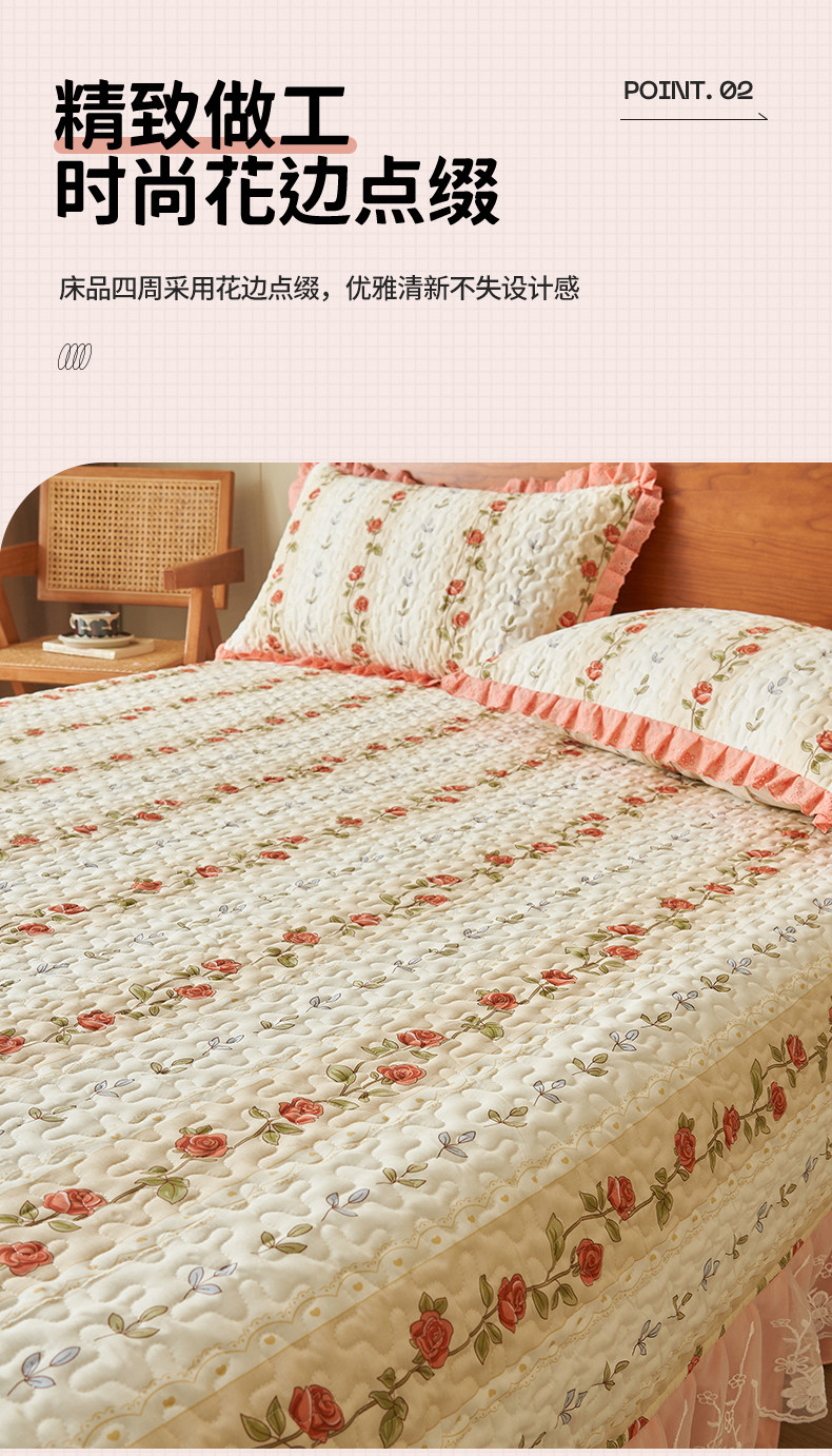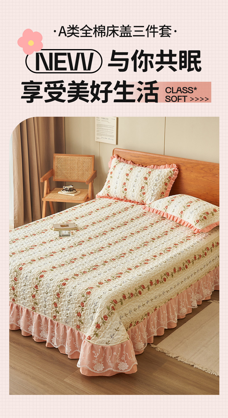 商品名称:恒爱 2023新款全棉床盖三件套 婉风玫瑰