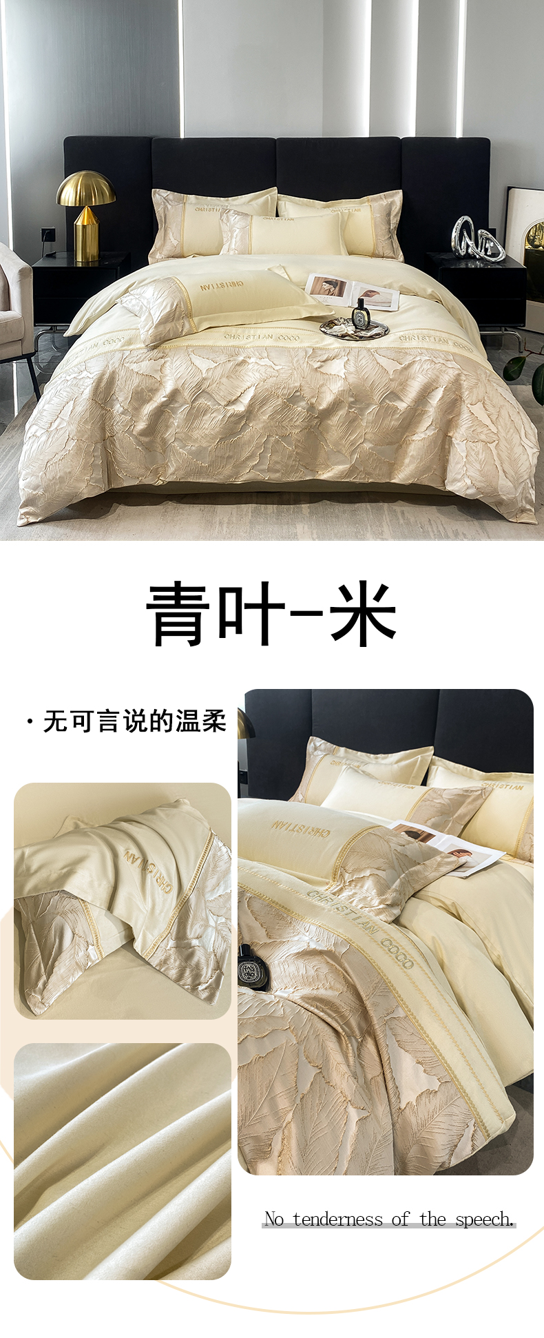 涵宸家纺 2023新款原棉磨毛四件套-青叶 青叶-米