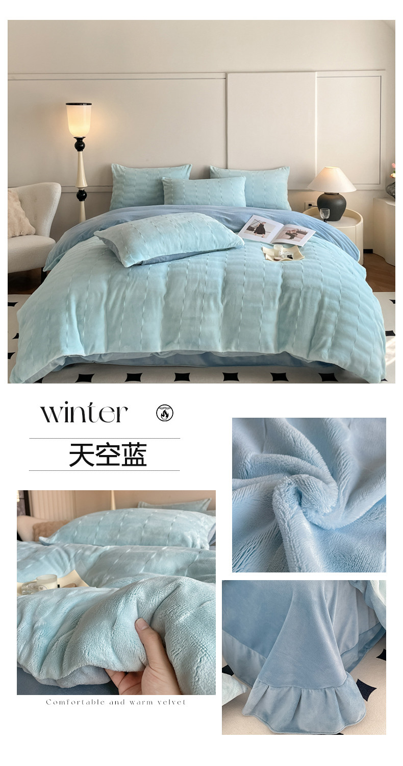 (总)子曰 2025新款雕花加厚牛奶绒宽边工艺款四件套-小香风,小香风-咖,小香风-粉,小香风-绿,小香风-米白,小香风-紫
