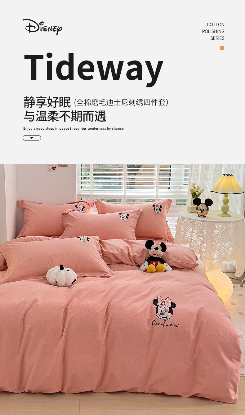 当前位置: 91家纺网 > 商品网购 > 床品套件 > 四件套 > 全棉普通四件套 > 慕尚家纺 2025新款迪士尼全棉磨毛刺绣系列四件套 米妮桃粉