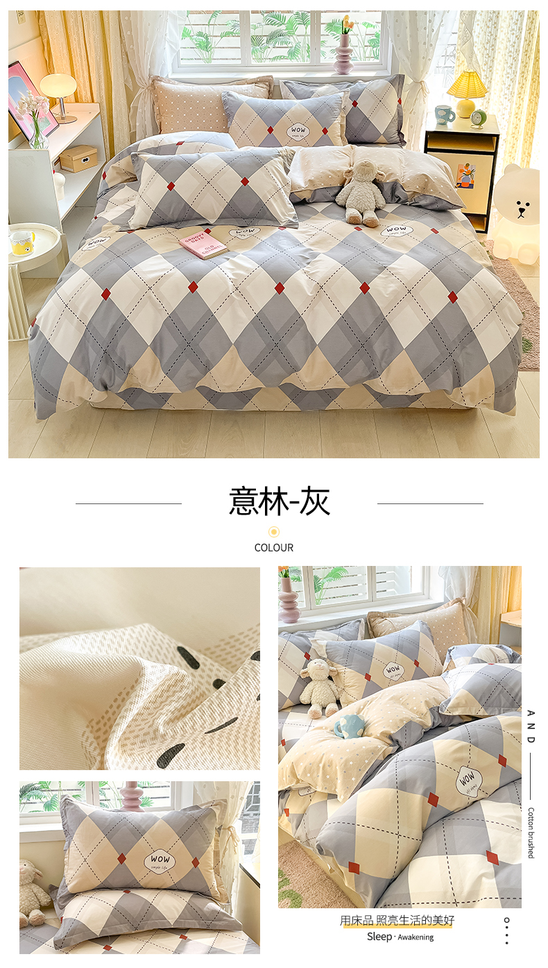 当前位置: 91家纺网 > 商品网购 > 床品套件 > 四件套 > 全棉普通四件套 > 铭成家纺 2024新款新疆棉喷气印花小清新系列四件套 意林-灰