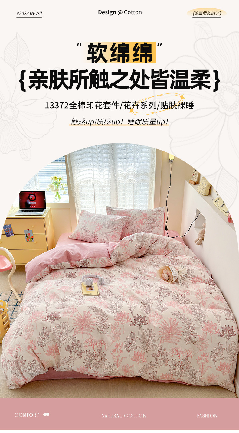 当前位置: 91家纺网 > 商品网购 > 床品套件 > 四件套 > 全棉普通四件套 > 优彩 2025新款花花系列13372全棉四件套 春来