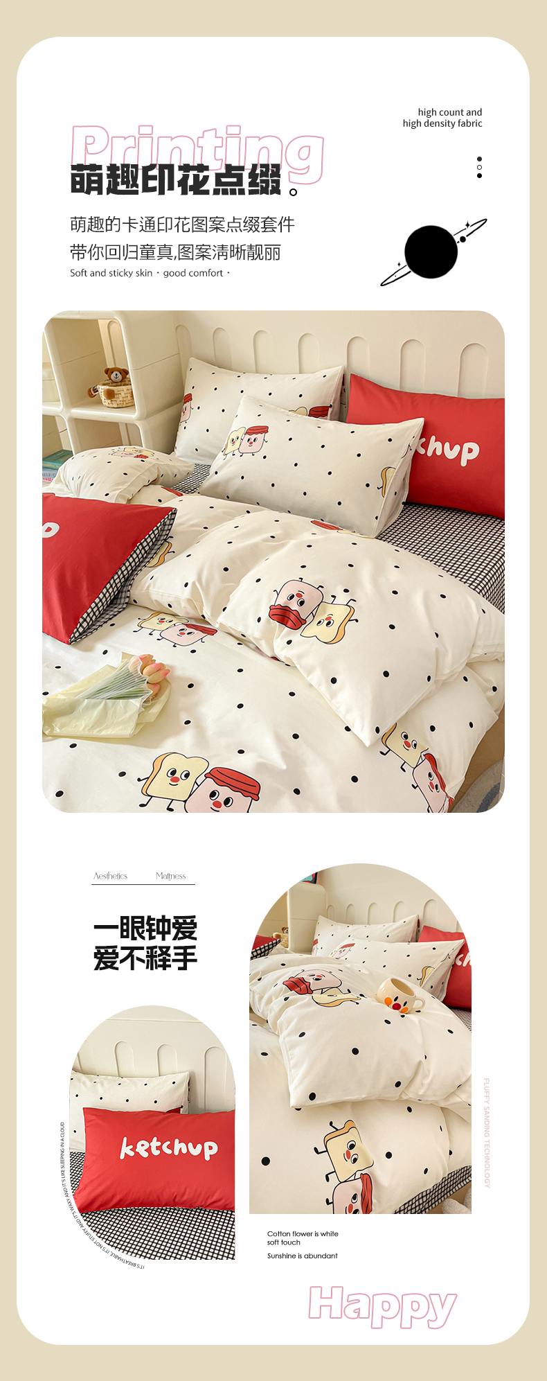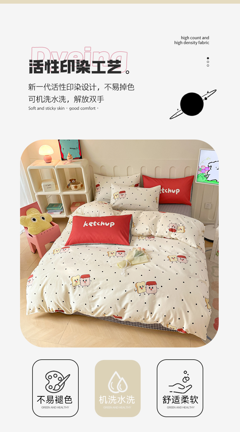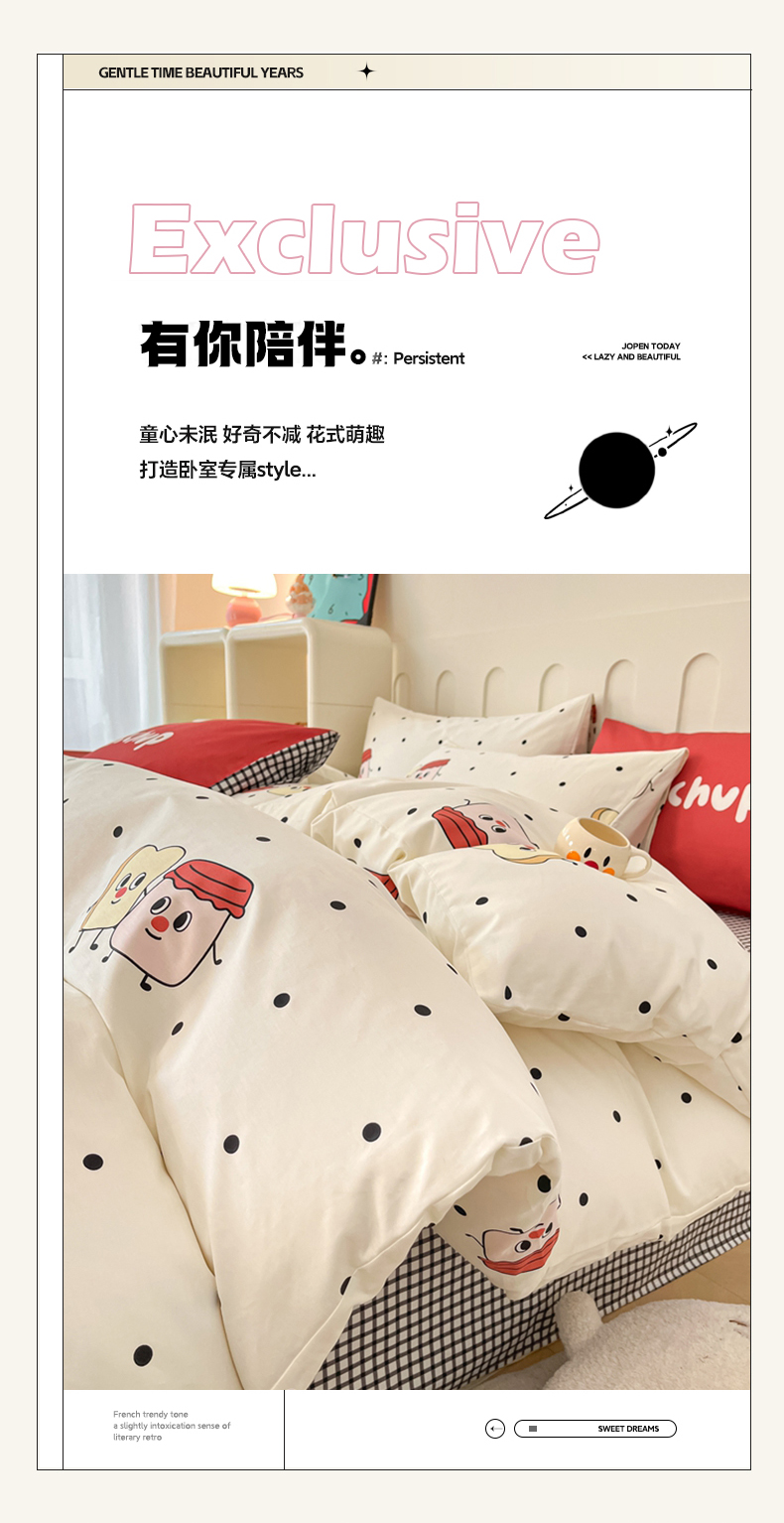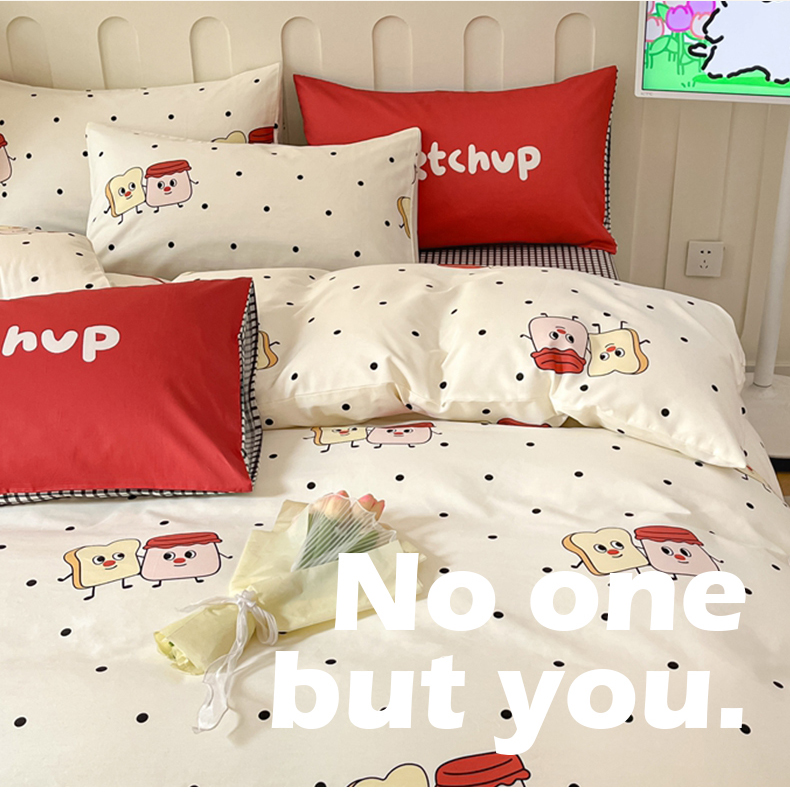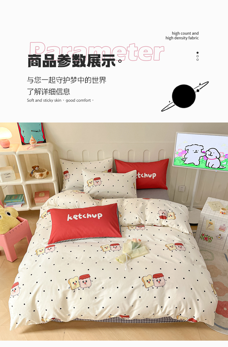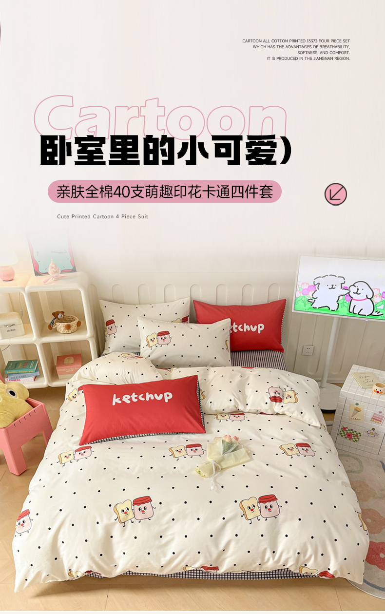 商品名称:呗旺鹿 2024新款舒适亲肤全棉40支大平网定位枕萌趣印花卡通四件套 蜜糖吐司