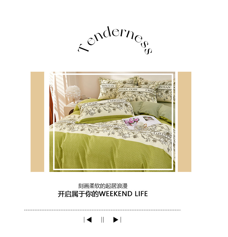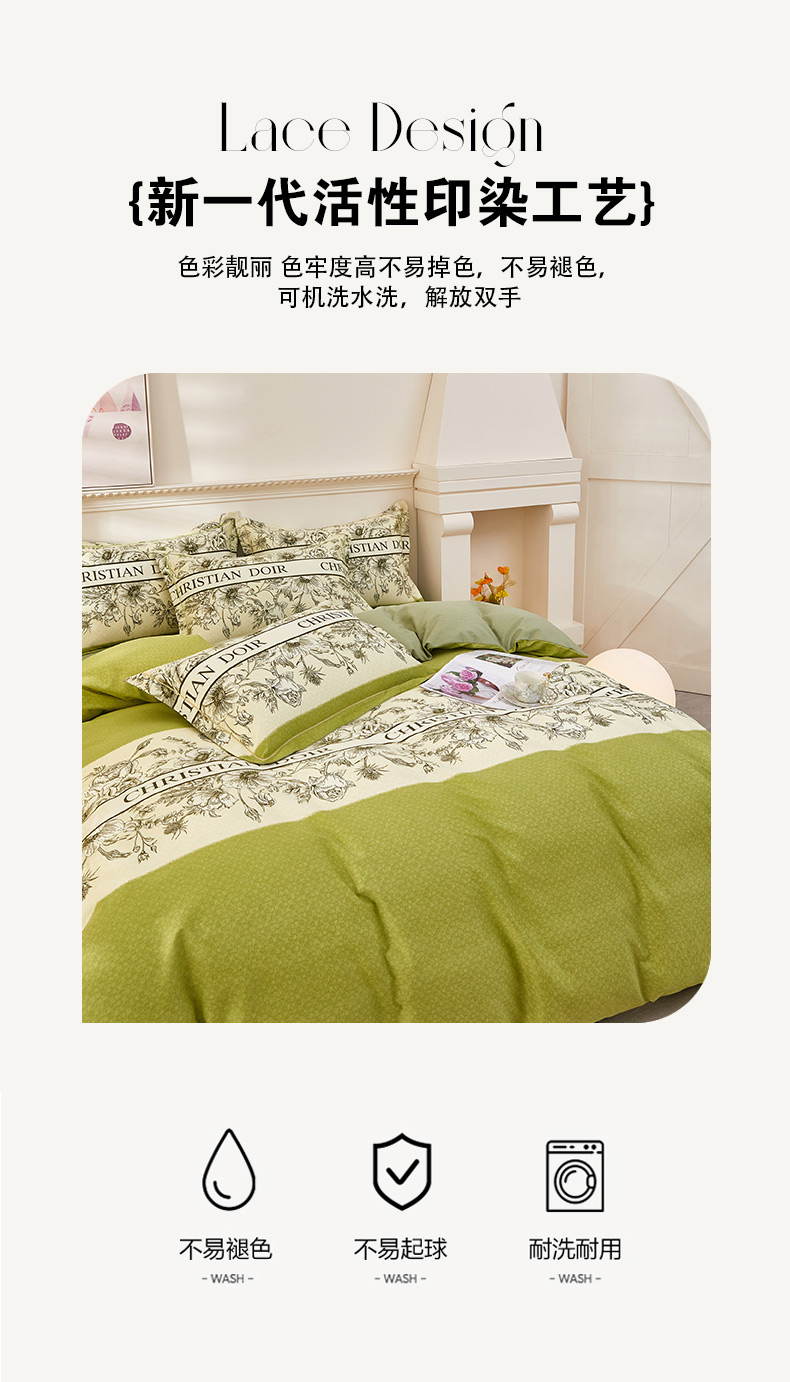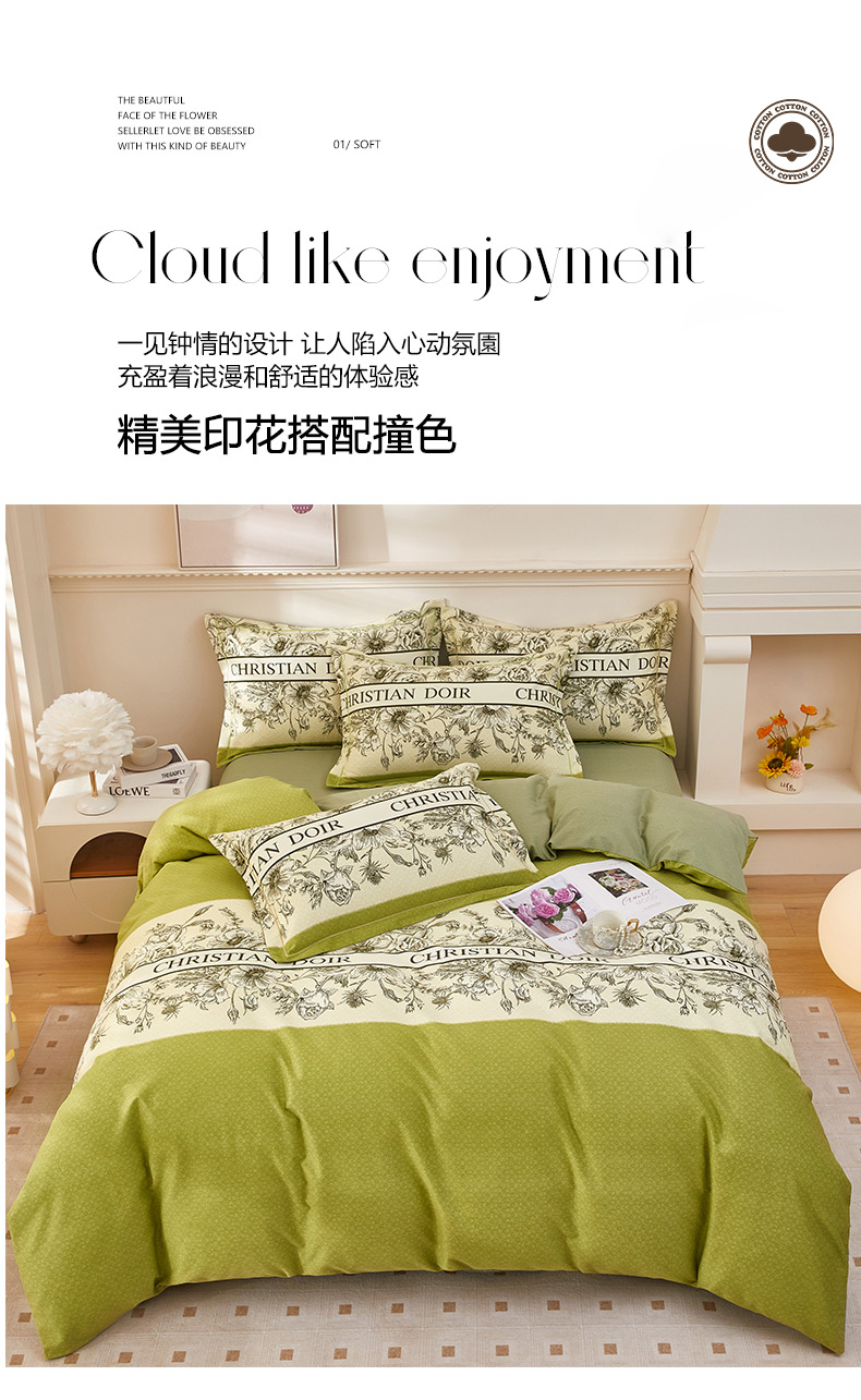 商品名称:雲归梦 2023新款全棉AB版加厚四件套 赫本 绿
