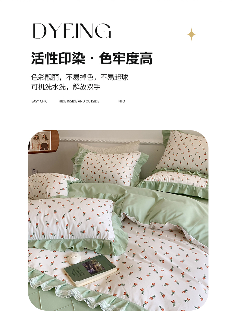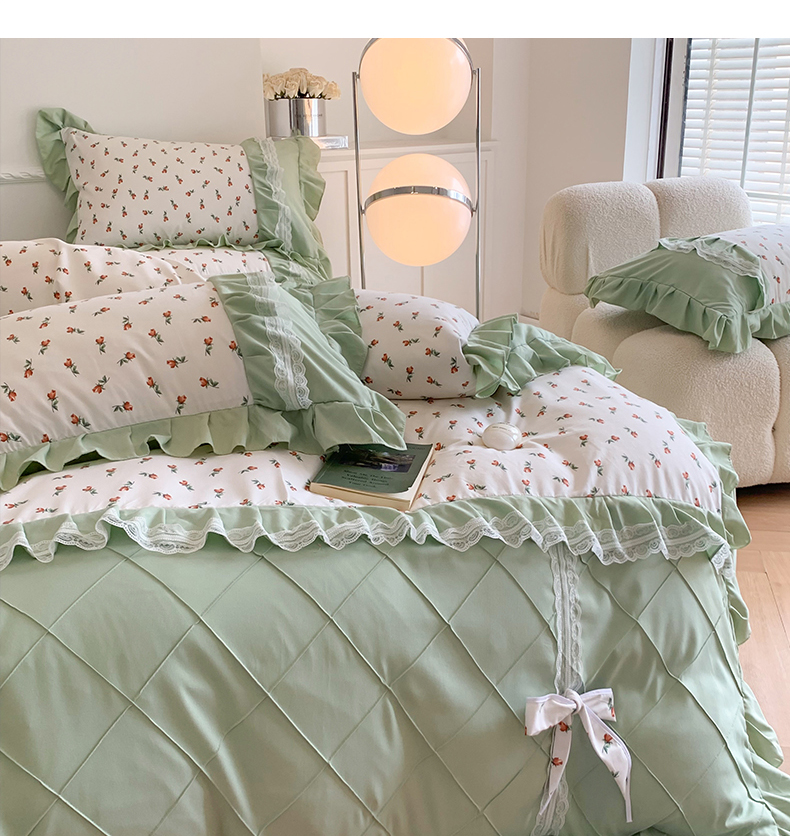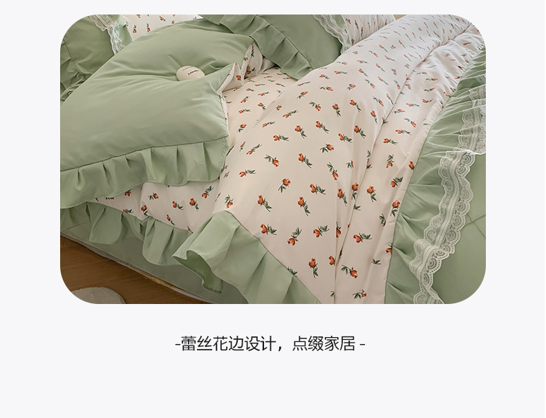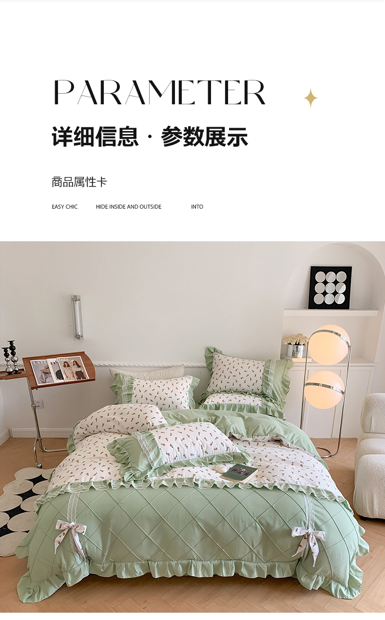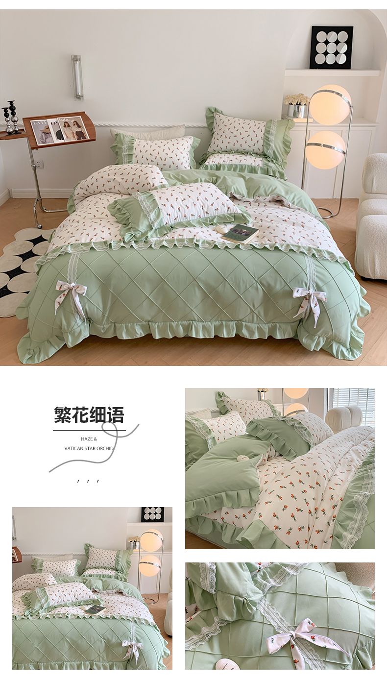 商品名称:吾欢心 2025新款蝴蝶结款韩版蕾丝花边四件套 繁花细语