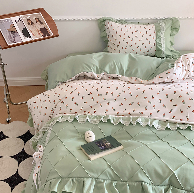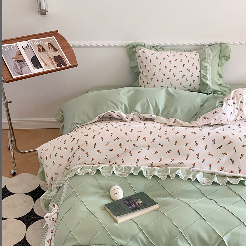 吾欢心 2025新款蝴蝶结款韩版蕾丝花边四件套 繁花细语