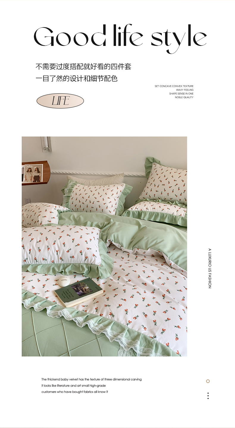 (总)吾欢心 2024新款韩版花边牛奶绒四件套,爱心草莓,爱心小樱桃,彩色郁金香,初恋蔷薇,调皮小兔,花颂,花野迷踪,花园时光,花园小熊,可爱狗狗,可爱小熊,绿爱心,梦境女孩,莫奈花园,奶油草莓,兔子小熊,晚安兔,鲜花萝莉,小雏菊,小柑橘,樱桃小兔,郁金香女孩,郁金香小兔,元气桃桃