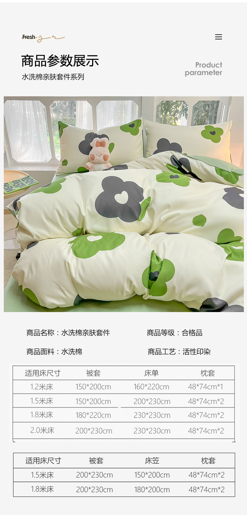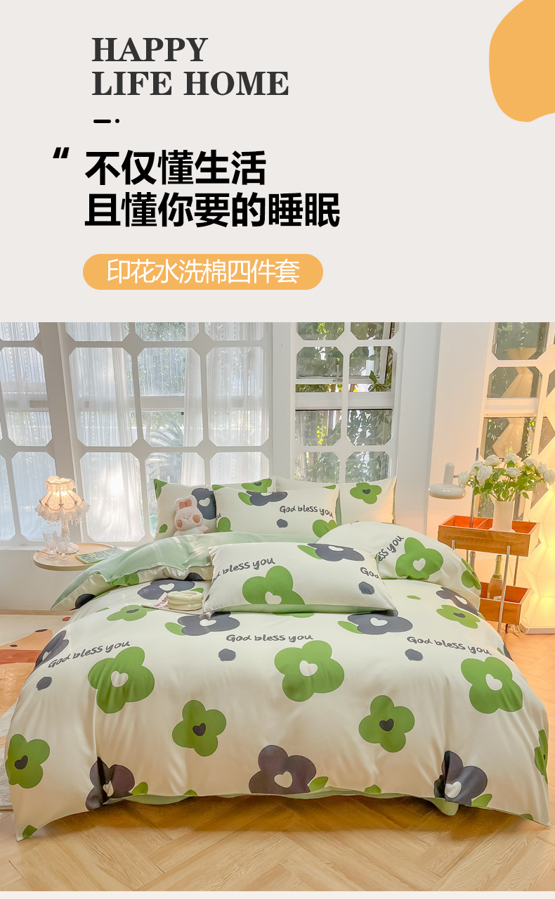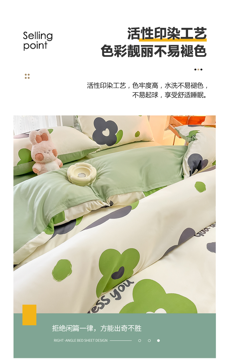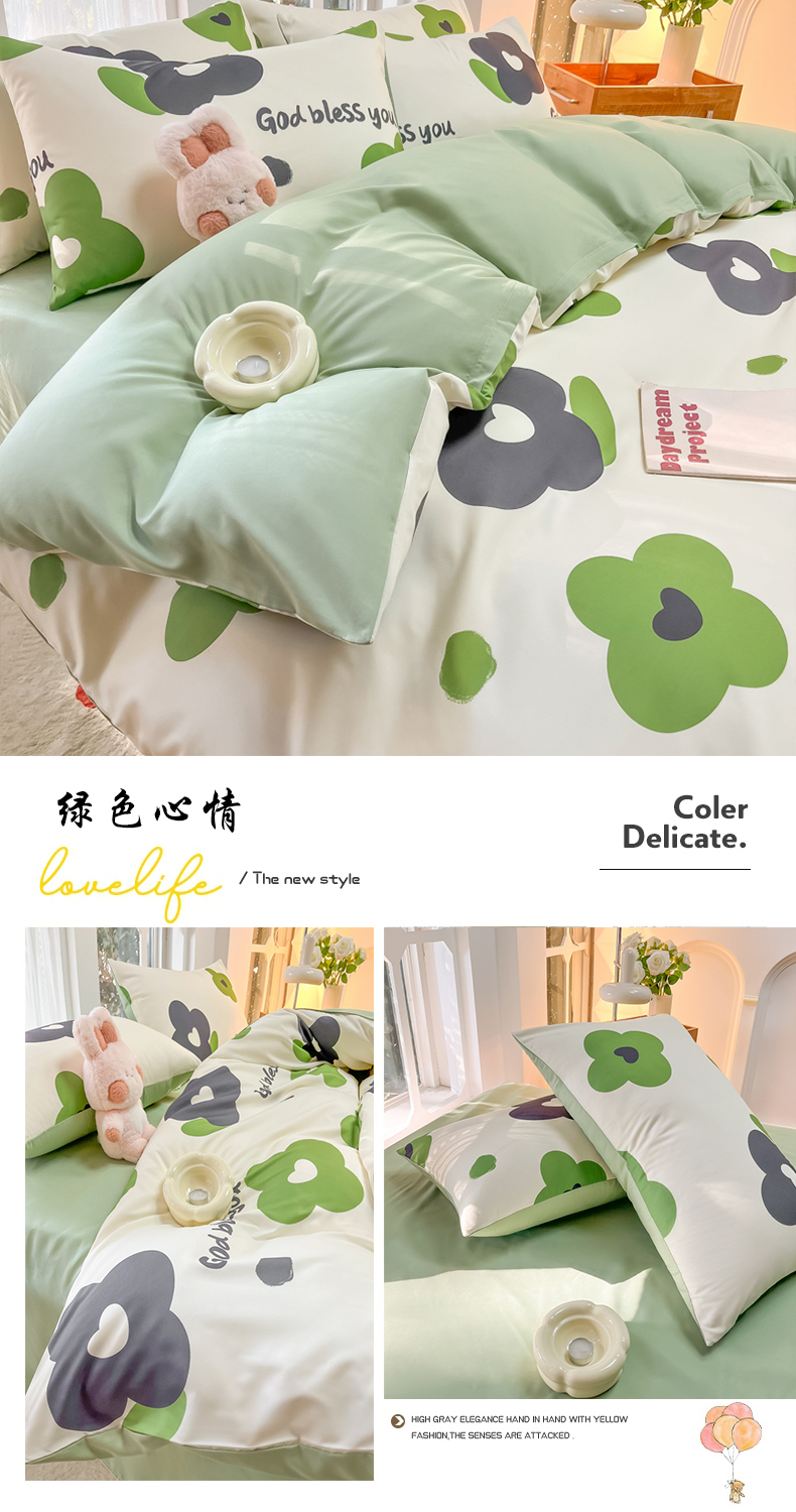 当前位置: 91家纺网 > 商品网购 > 床品套件 > 四件套 > 水洗棉四件套 > yyds网供 2024新款水洗棉印花卡通四件套花卉小清新单件被套 绿色心情