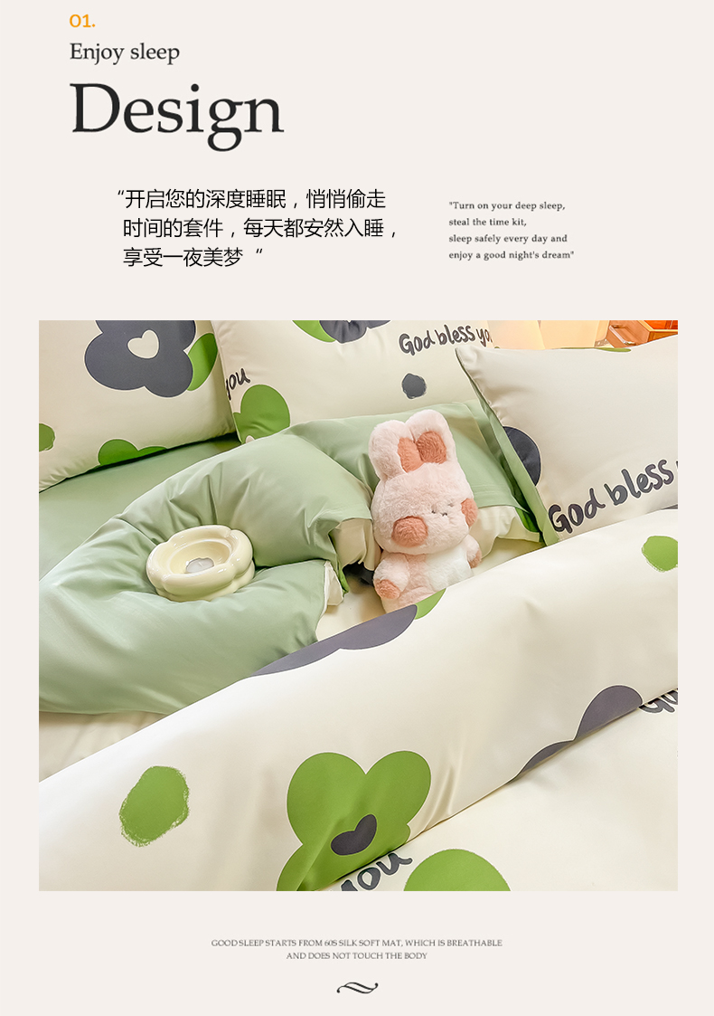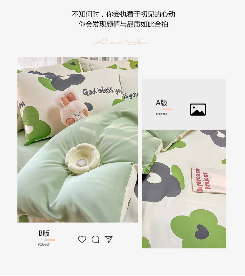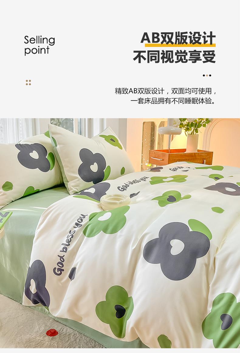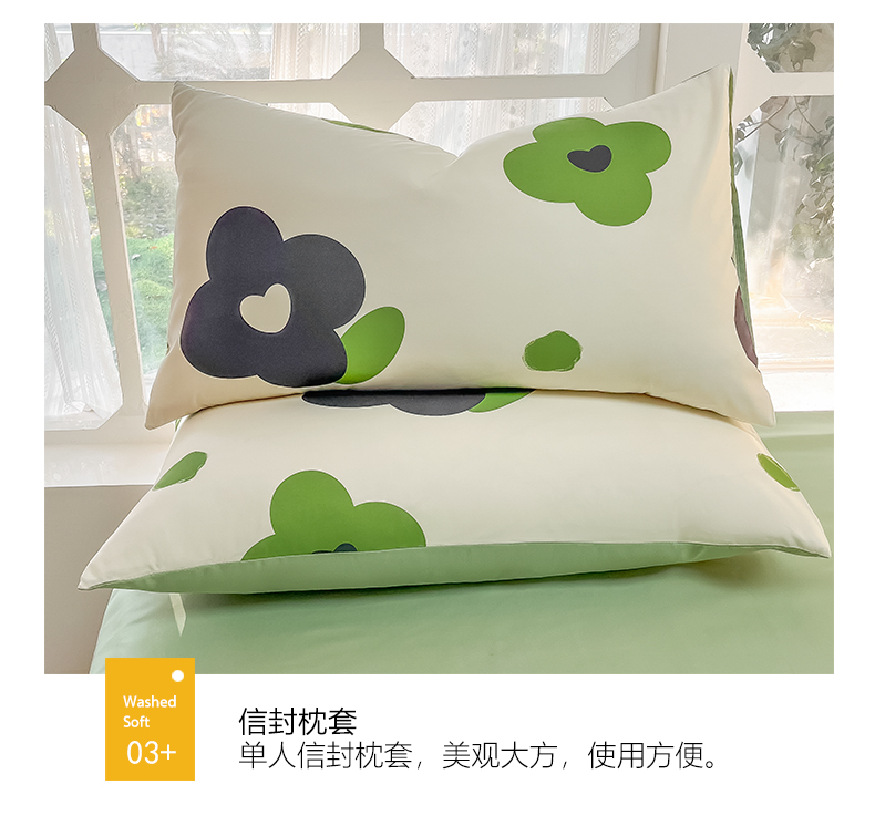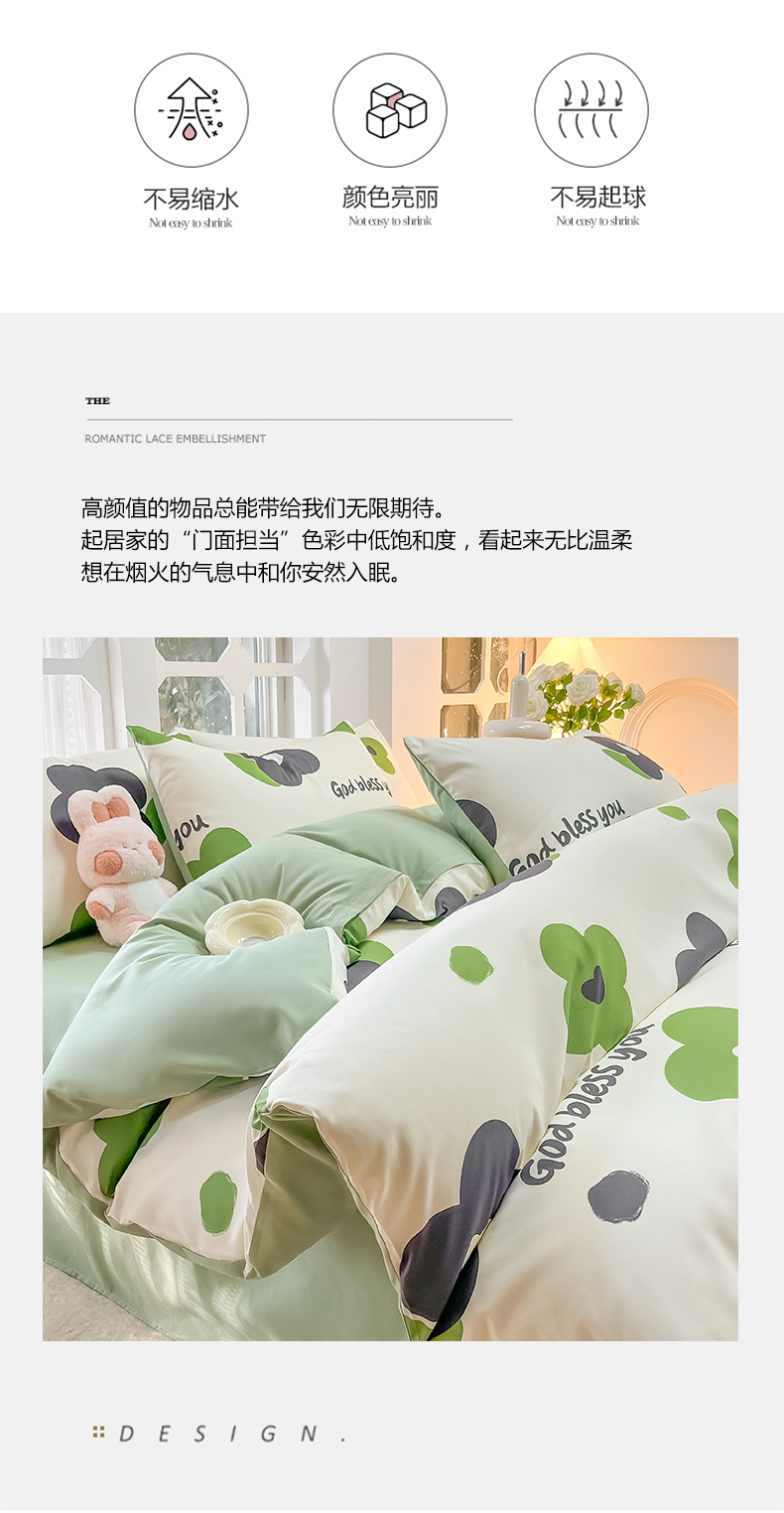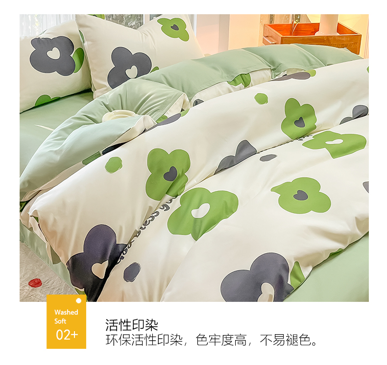 当前位置: 91家纺网 > 商品网购 > 床品套件 > 四件套 > 水洗棉四件套 > yyds网供 2024新款水洗棉印花卡通四件套花卉小清新单件被套 绿色心情