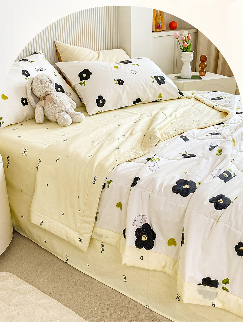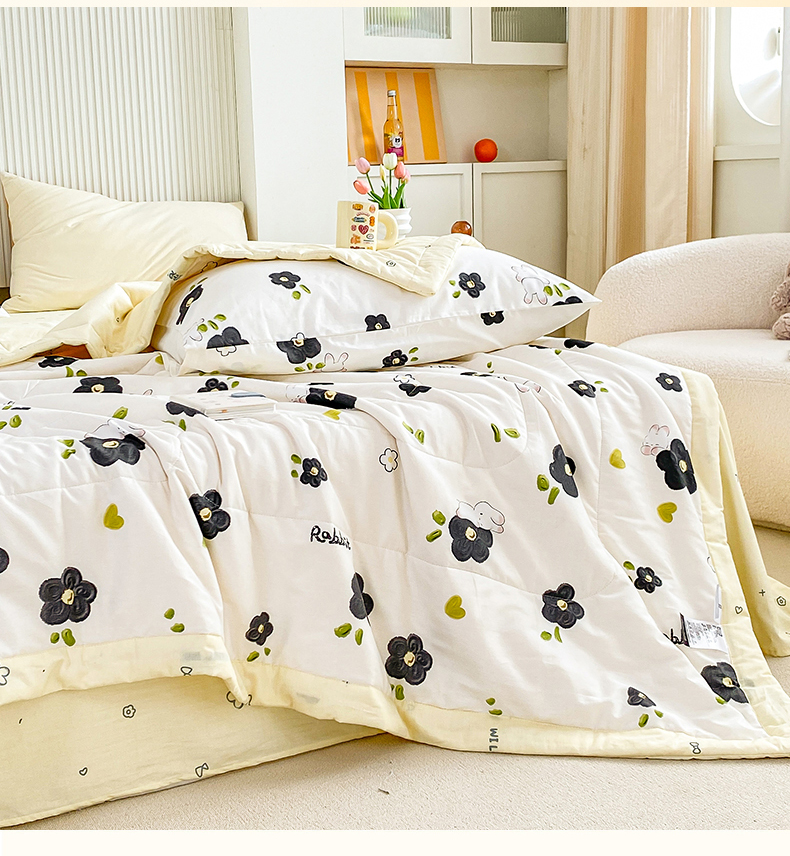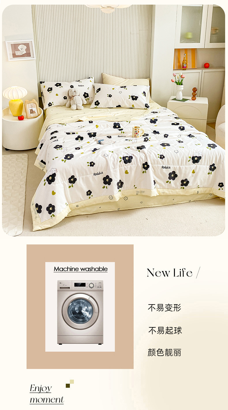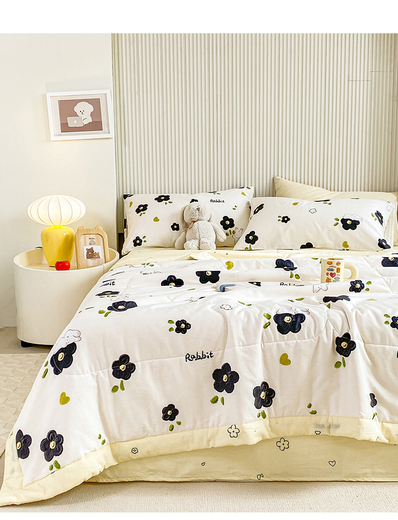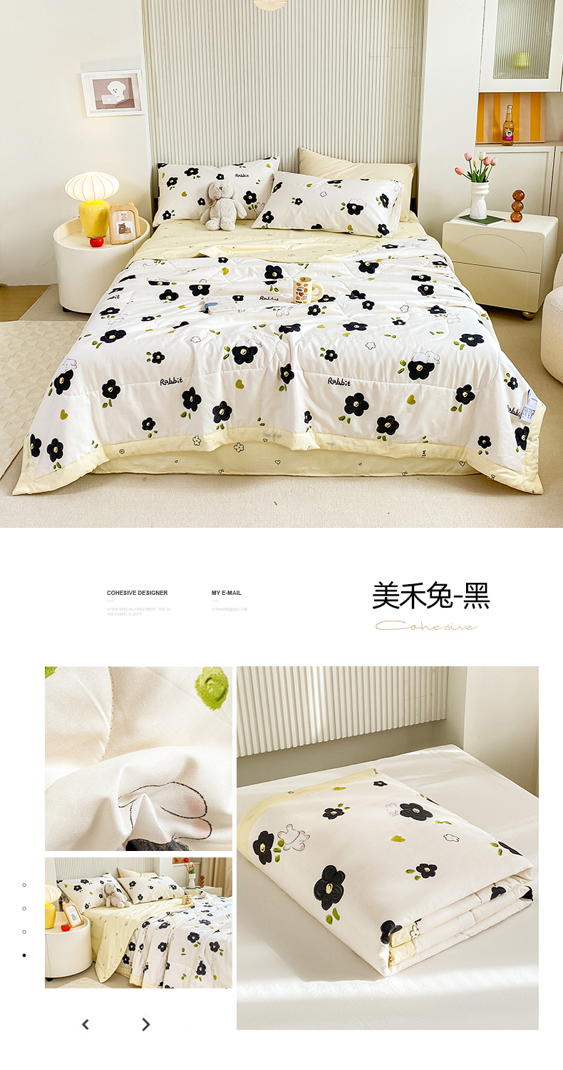 鸣升家纺 A类印花全棉12868棉花夏凉被四件套夏被 美禾兔(黑)