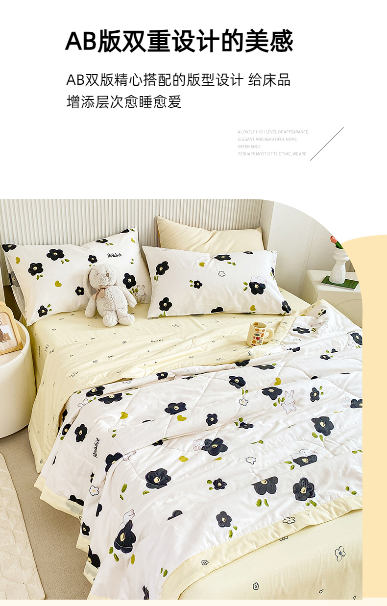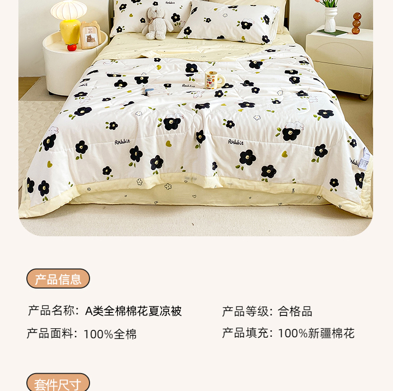 商品名称:鸣升家纺 A类印花全棉12868棉花夏凉被四件套夏被 美禾兔(黑)