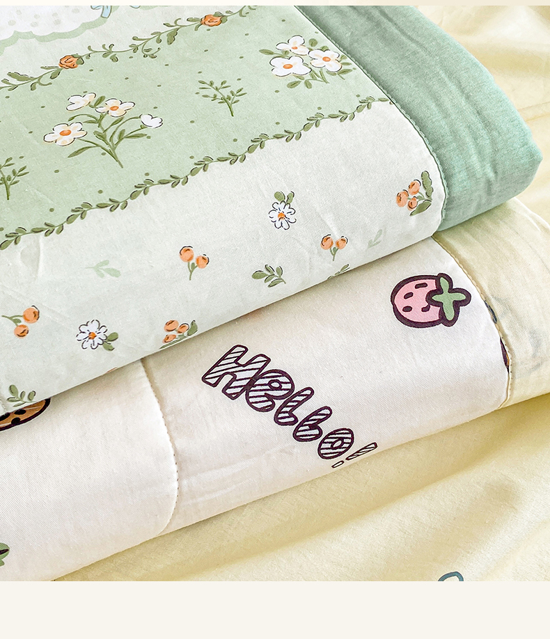(总)2025新款全棉双层皱皱沙印花花边30%大豆夏凉被纯棉夏被被子被芯,赫本熊,花梦,花期,萌犬,墨颜,星月,玉兔-绿