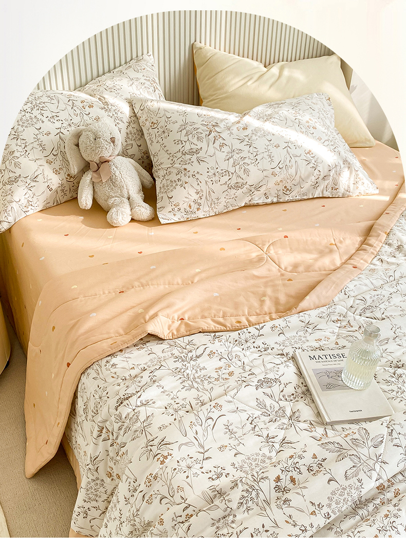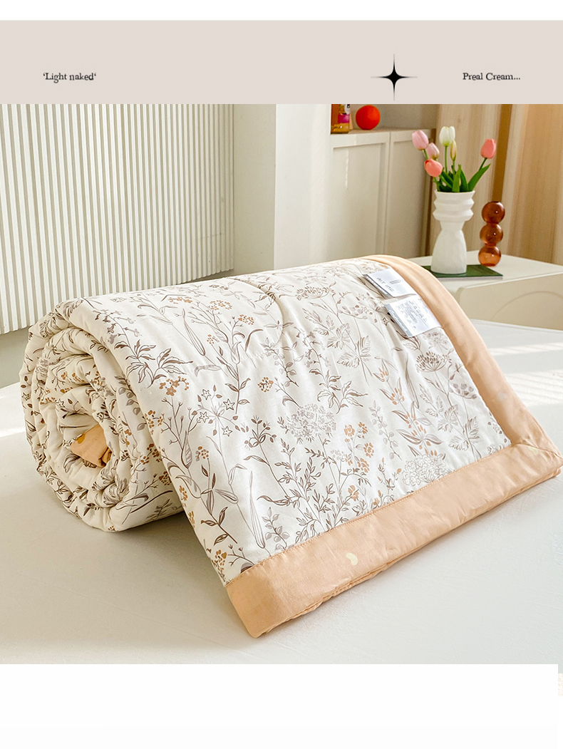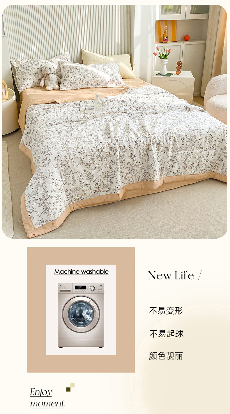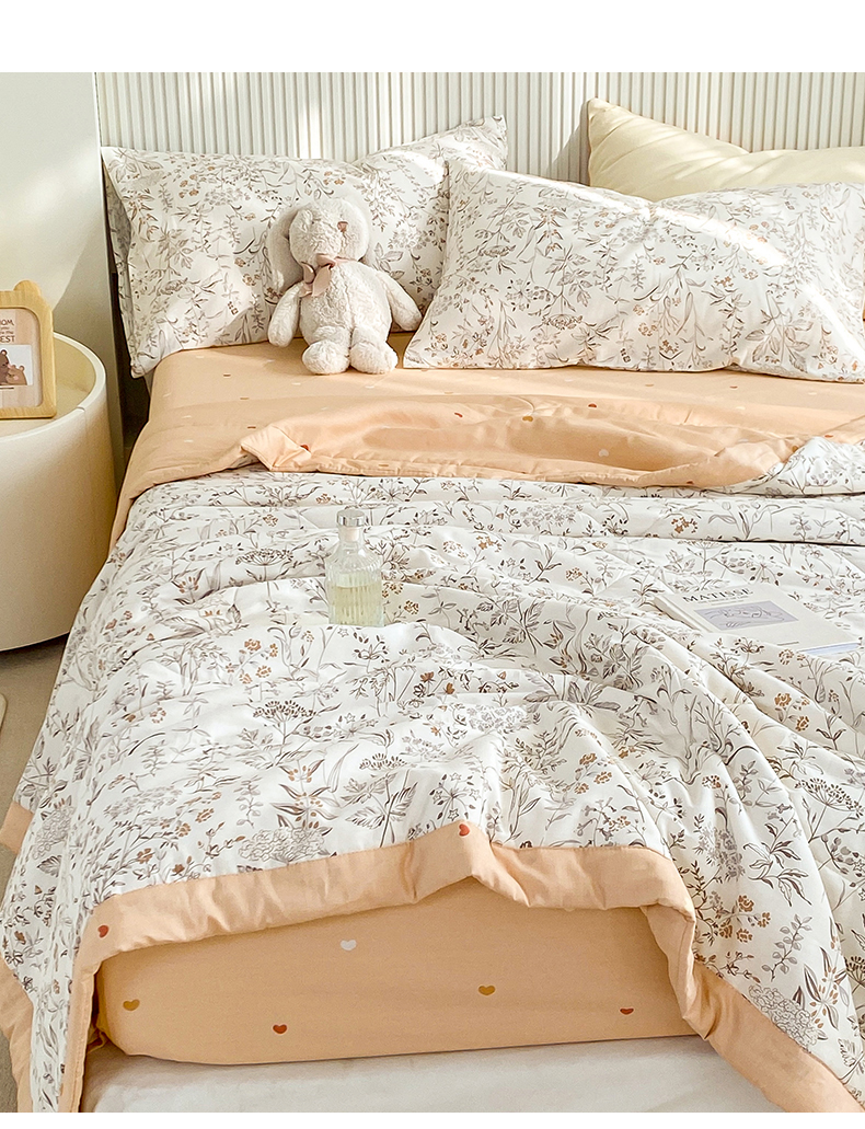 鸣升家纺 A类印花全棉12868棉花夏凉被四件套夏被 雨眠花季(咖)