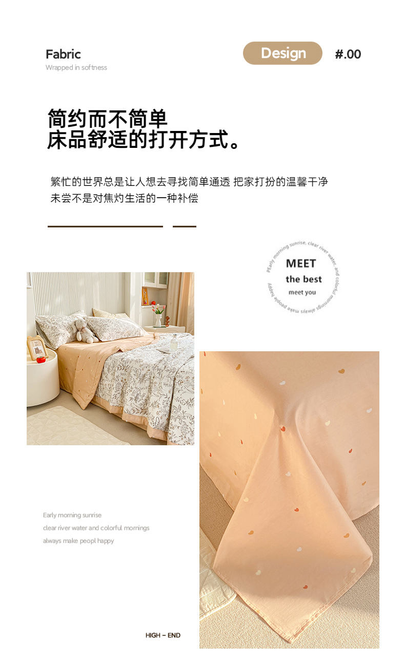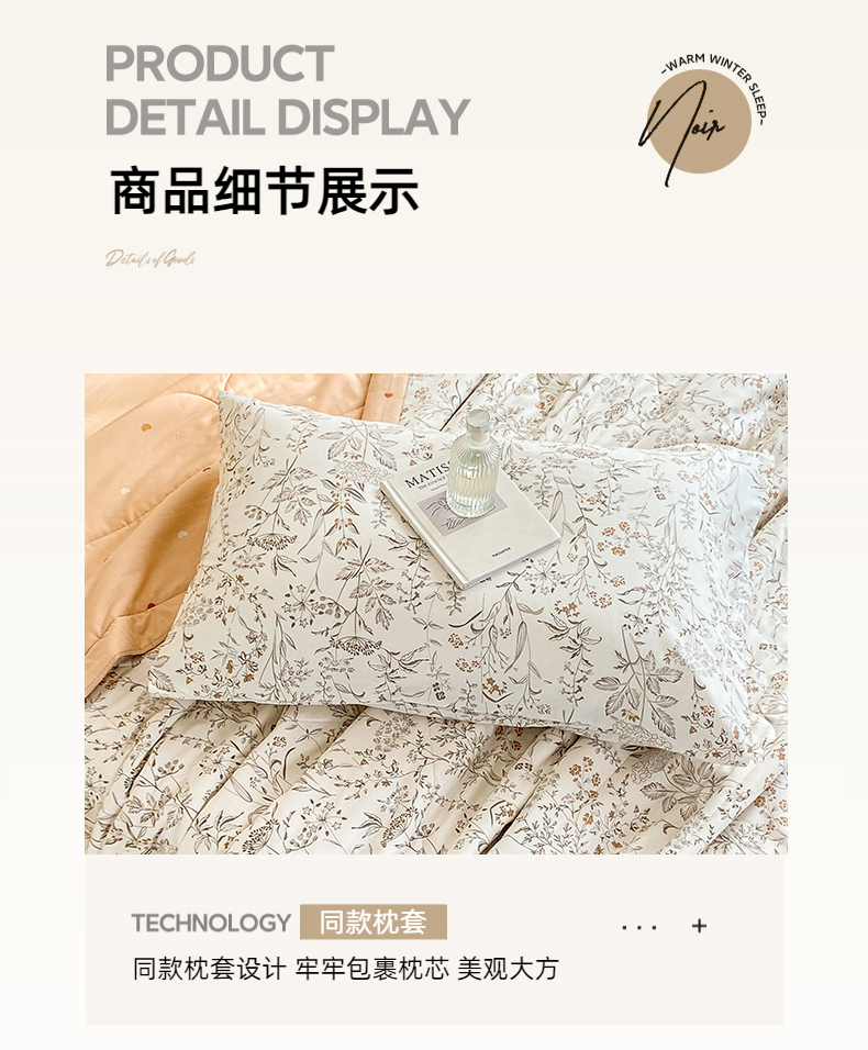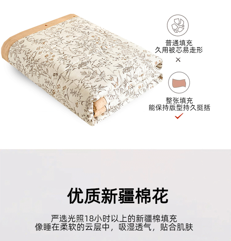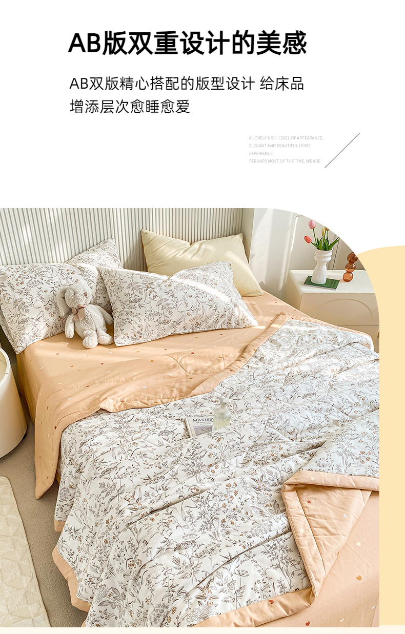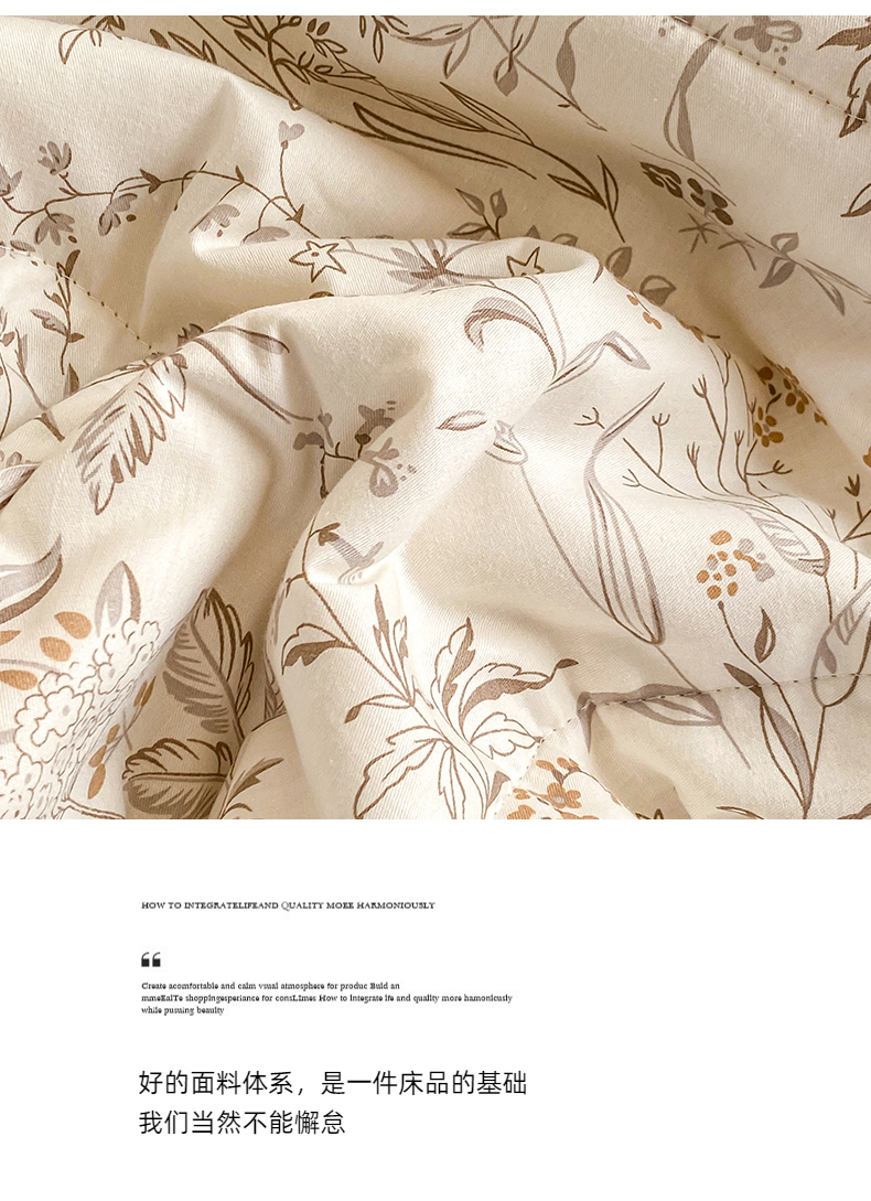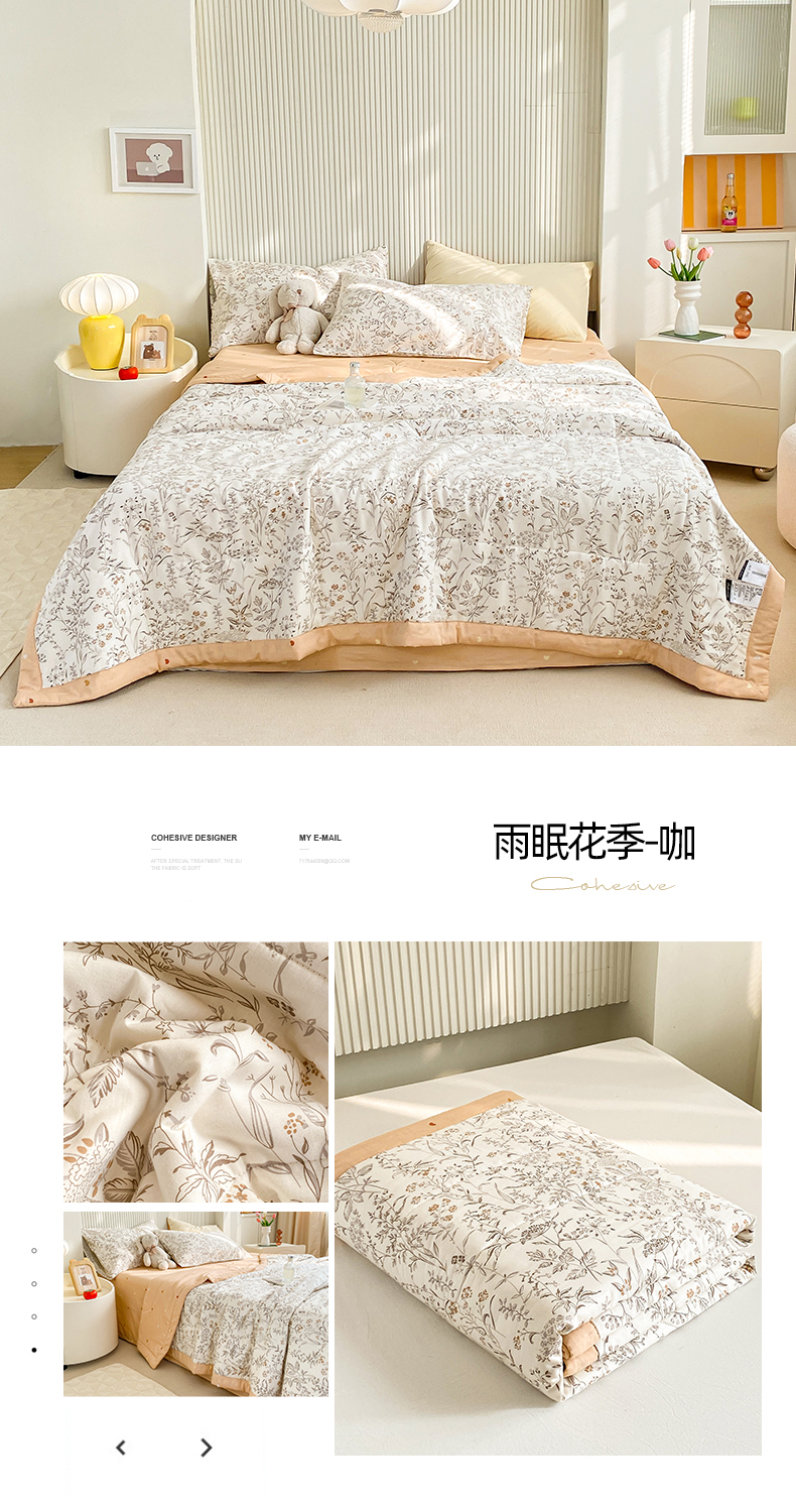 商品名称:鸣升家纺 A类印花全棉12868棉花夏凉被四件套夏被 雨眠花季(咖)