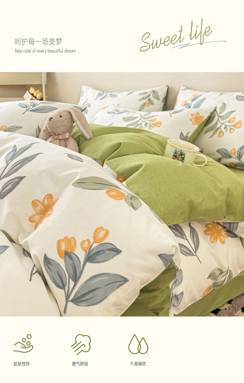 商品名称:红馆 2025年全棉12868印花系列四件套 风吹一夏