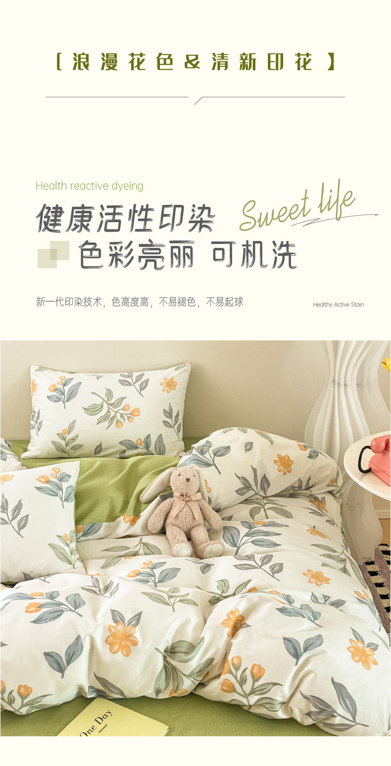 (总)红馆 13070全棉印花系列四件套-易安阁实拍风格,爱巢,草莓酱,春天里,多彩三角,格调,花曳,简爱,卷卷熊,空间,快乐宝贝,梦田,七夕,少女心,绅士,西雅图,小鲸鱼,星座