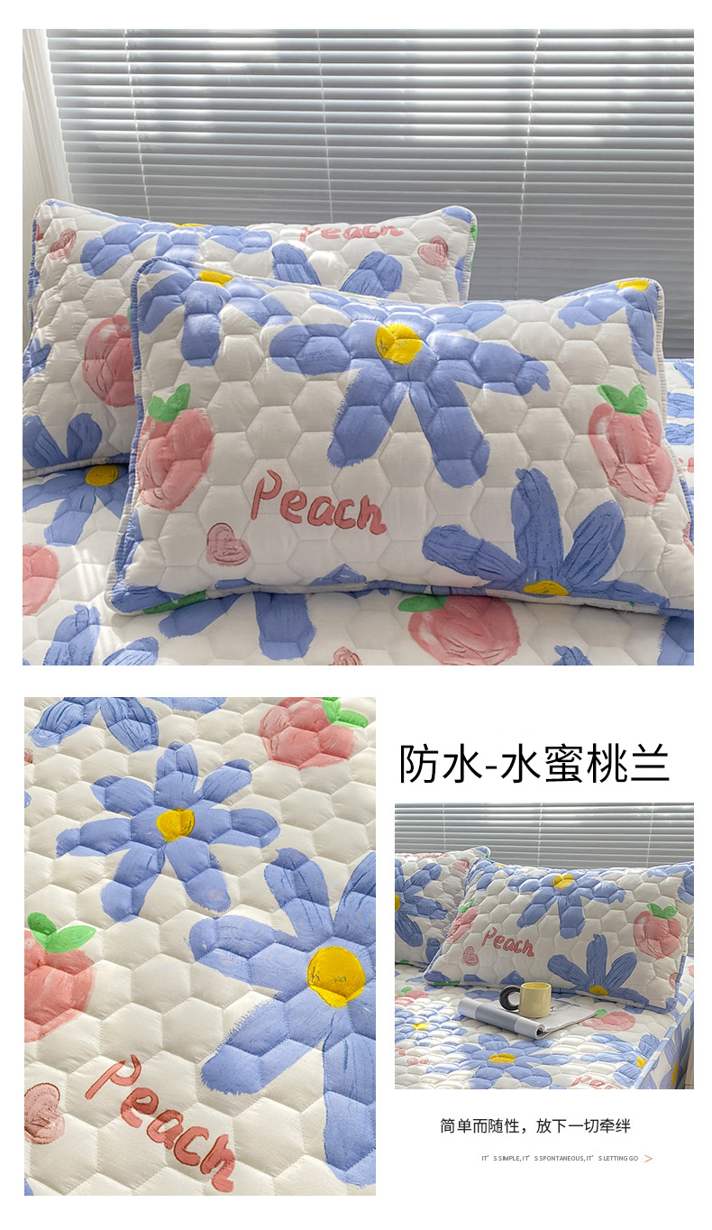 商品名称: 九亭家纺 2024新款全棉夹棉防口水防头油枕套 防水-水蜜桃兰