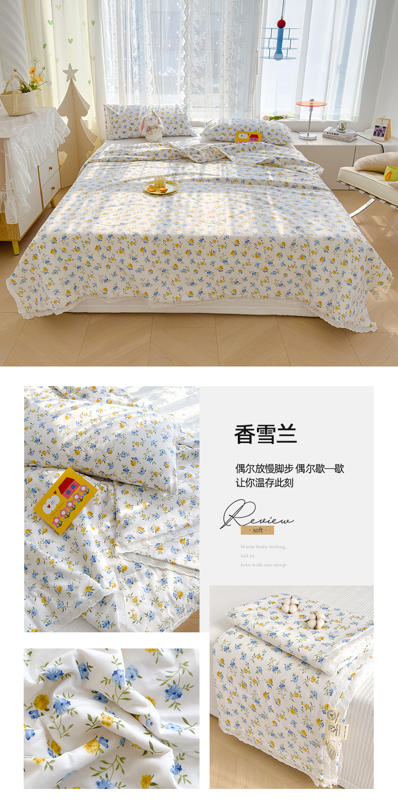 芯恋家居 2025新品全棉绣花边工艺款全棉棉花夏被春秋被 香雪兰