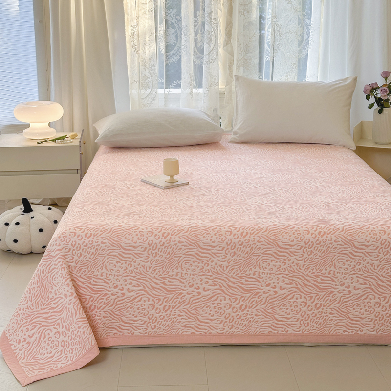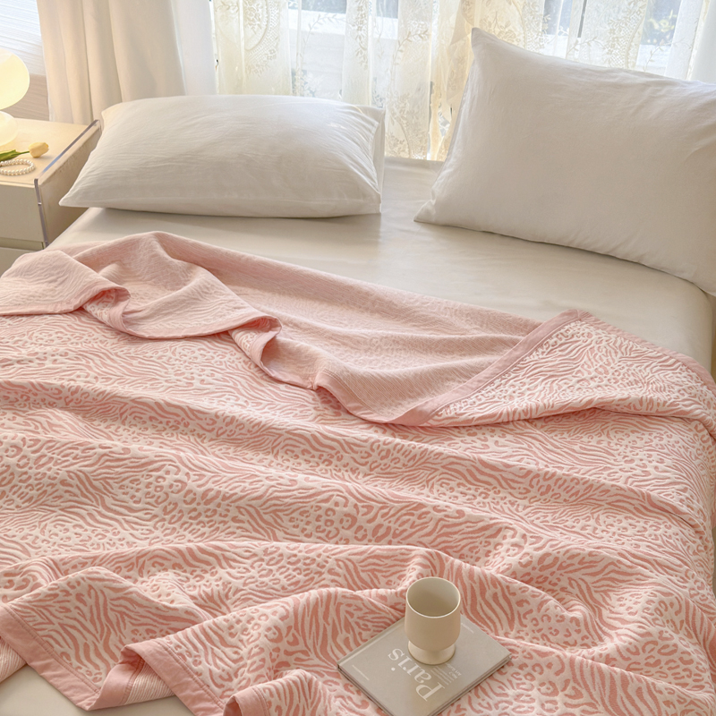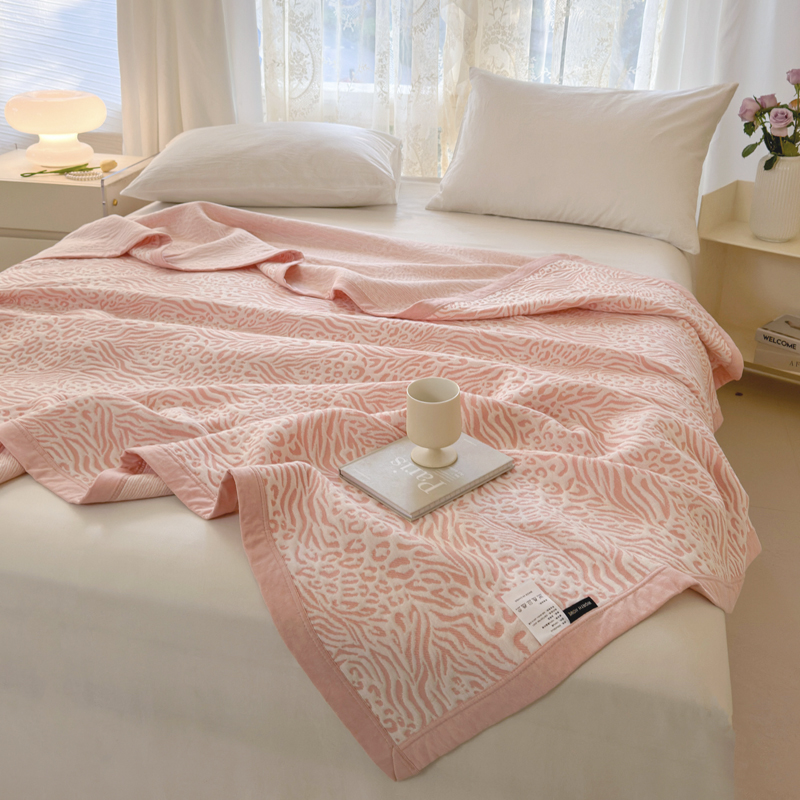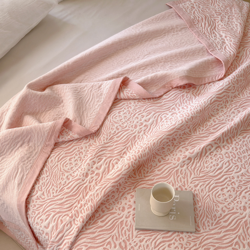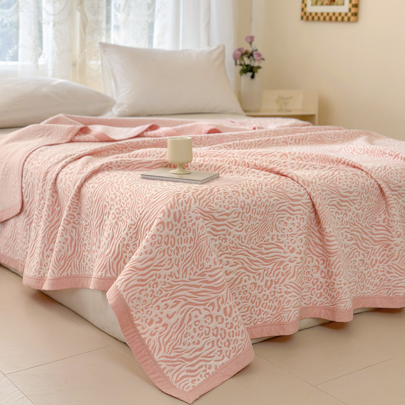 33家纺 新款A类全棉高端色织提花毯全棉夏被针织棉盖毯夏凉被空调被 豹纹粉