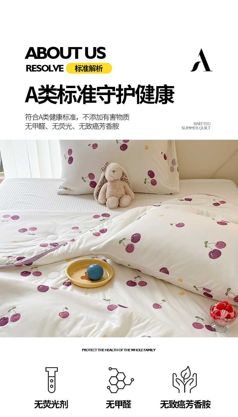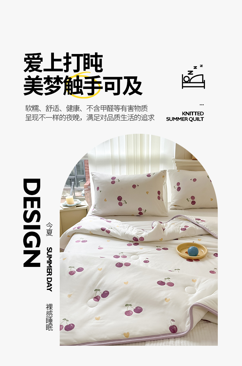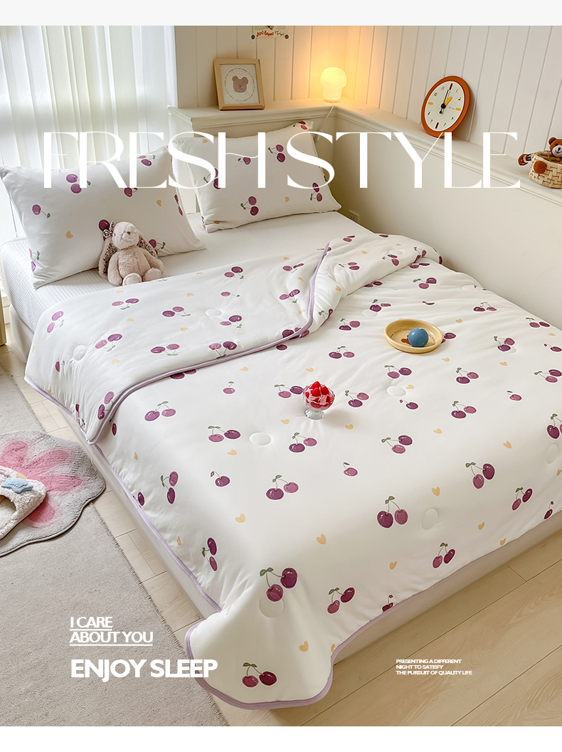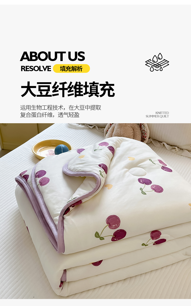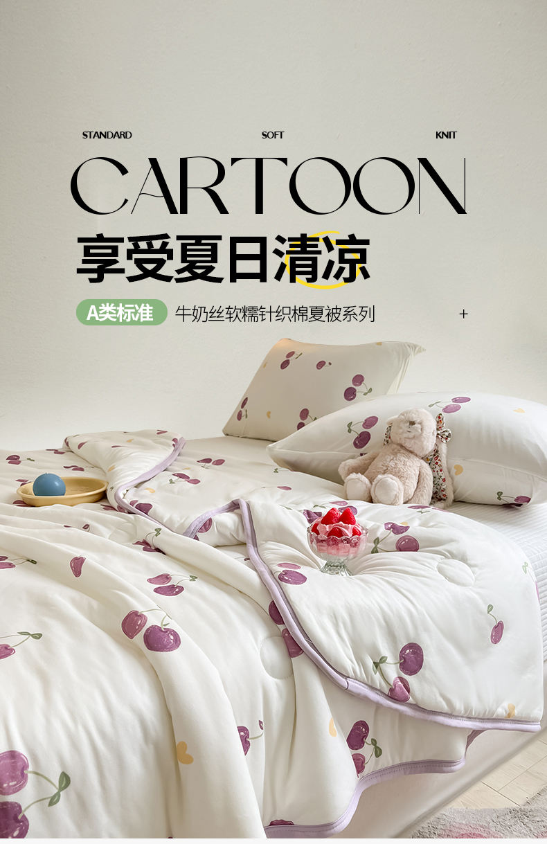 桃子家居 2024新款A类高品质牛奶丝软糯针织棉夏被 针织棉-紫紫樱桃
