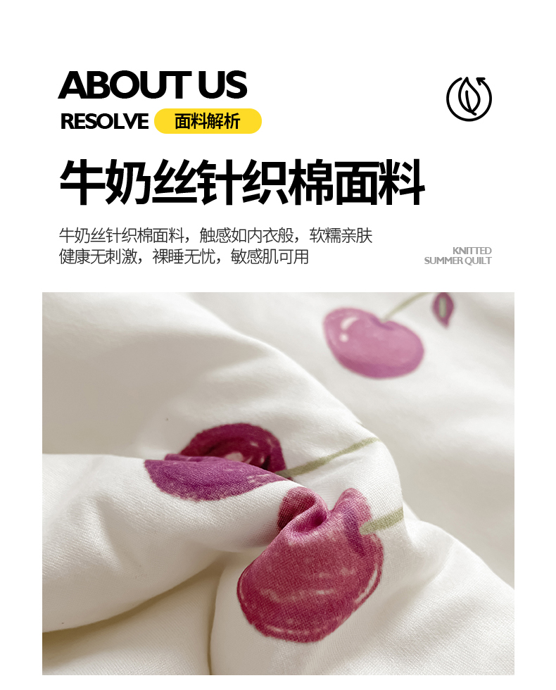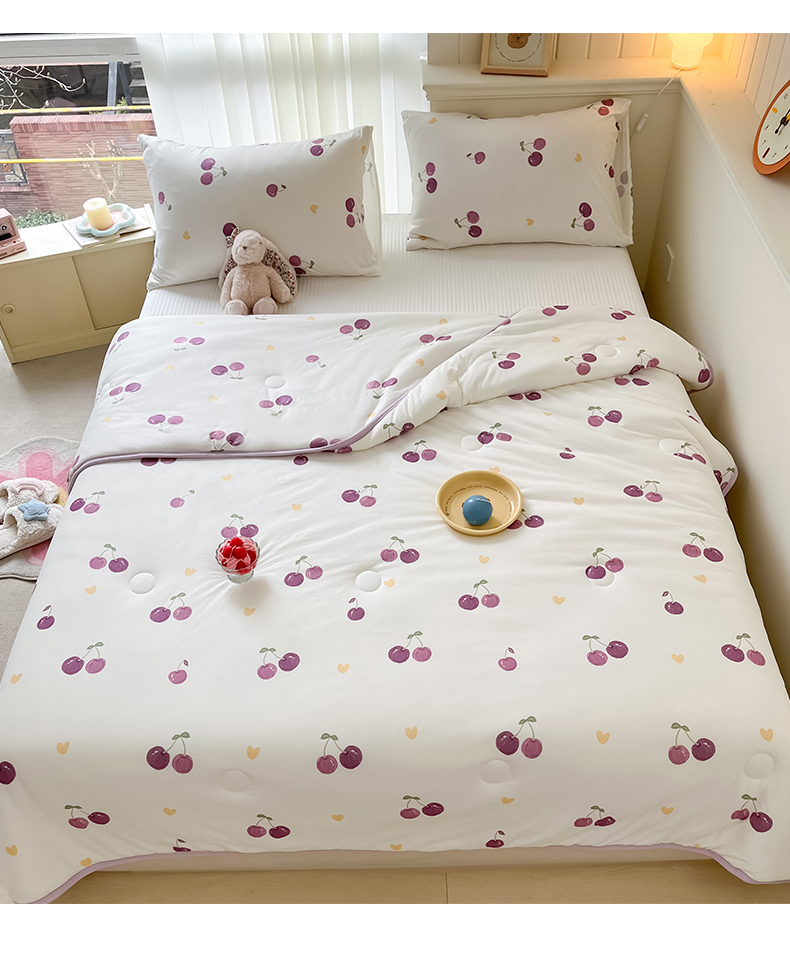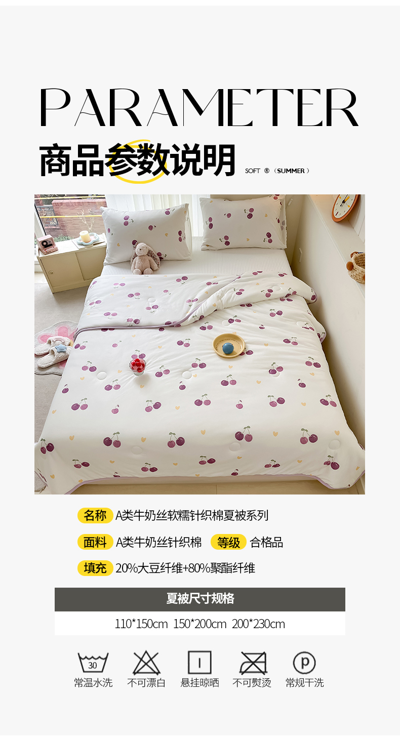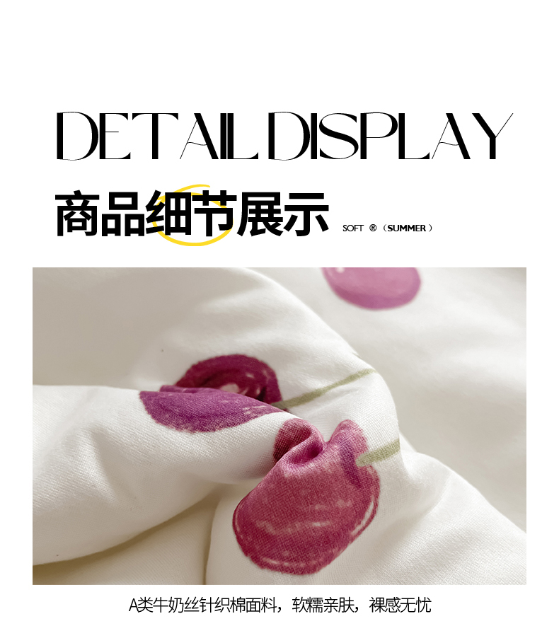 商品名称:桃子家居 2024新款A类高品质牛奶丝软糯针织棉夏被 针织棉-紫紫樱桃
