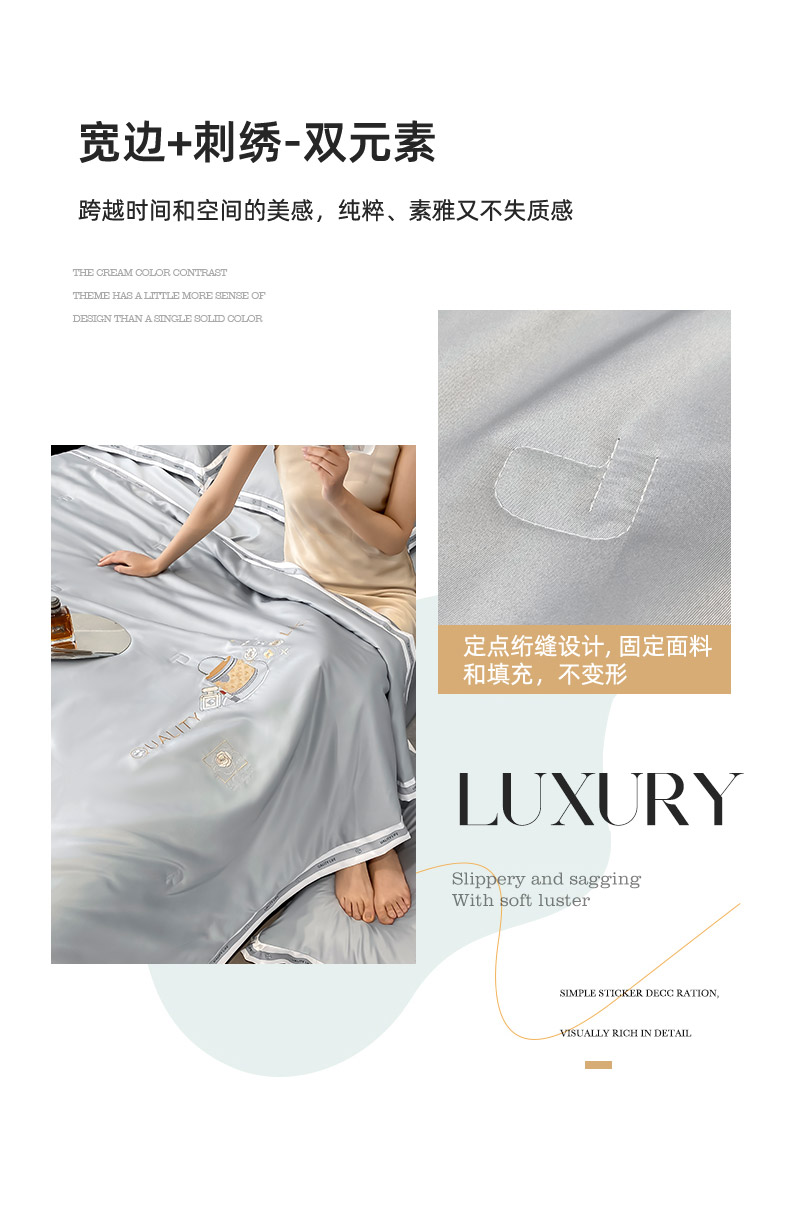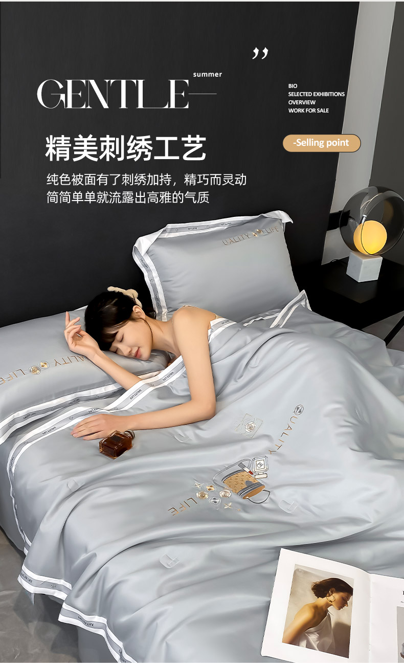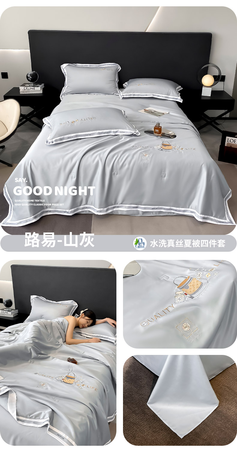 当前位置: 91家纺网 > 商品网购 > 床品套件 > 四件套 > 水洗真丝四件套 > 欧冠家纺 2024新款大牌风水洗真丝绣花床笠被套夏被四件套 路易系列 路易-山灰