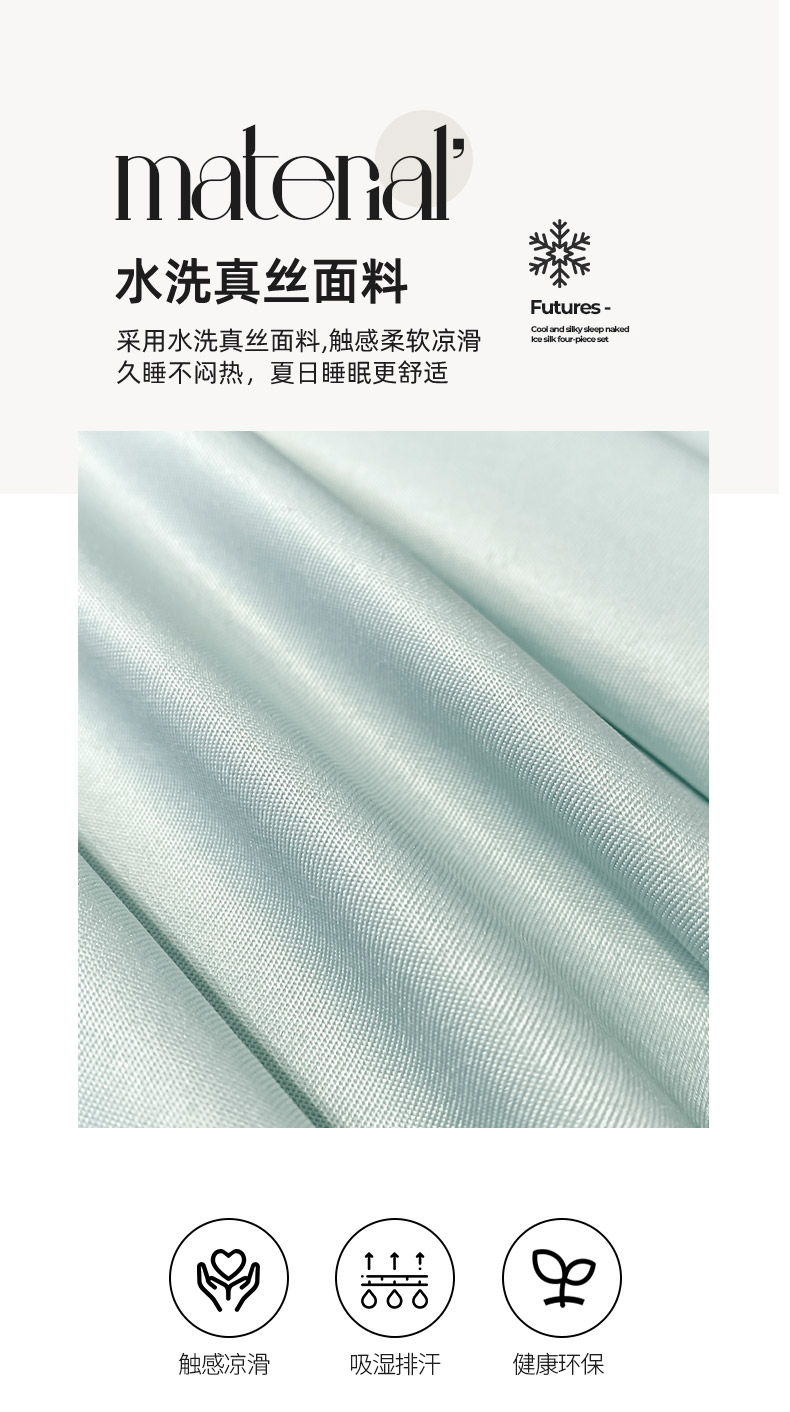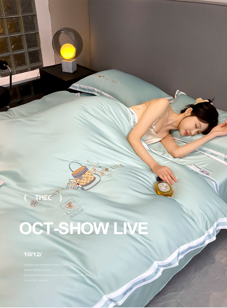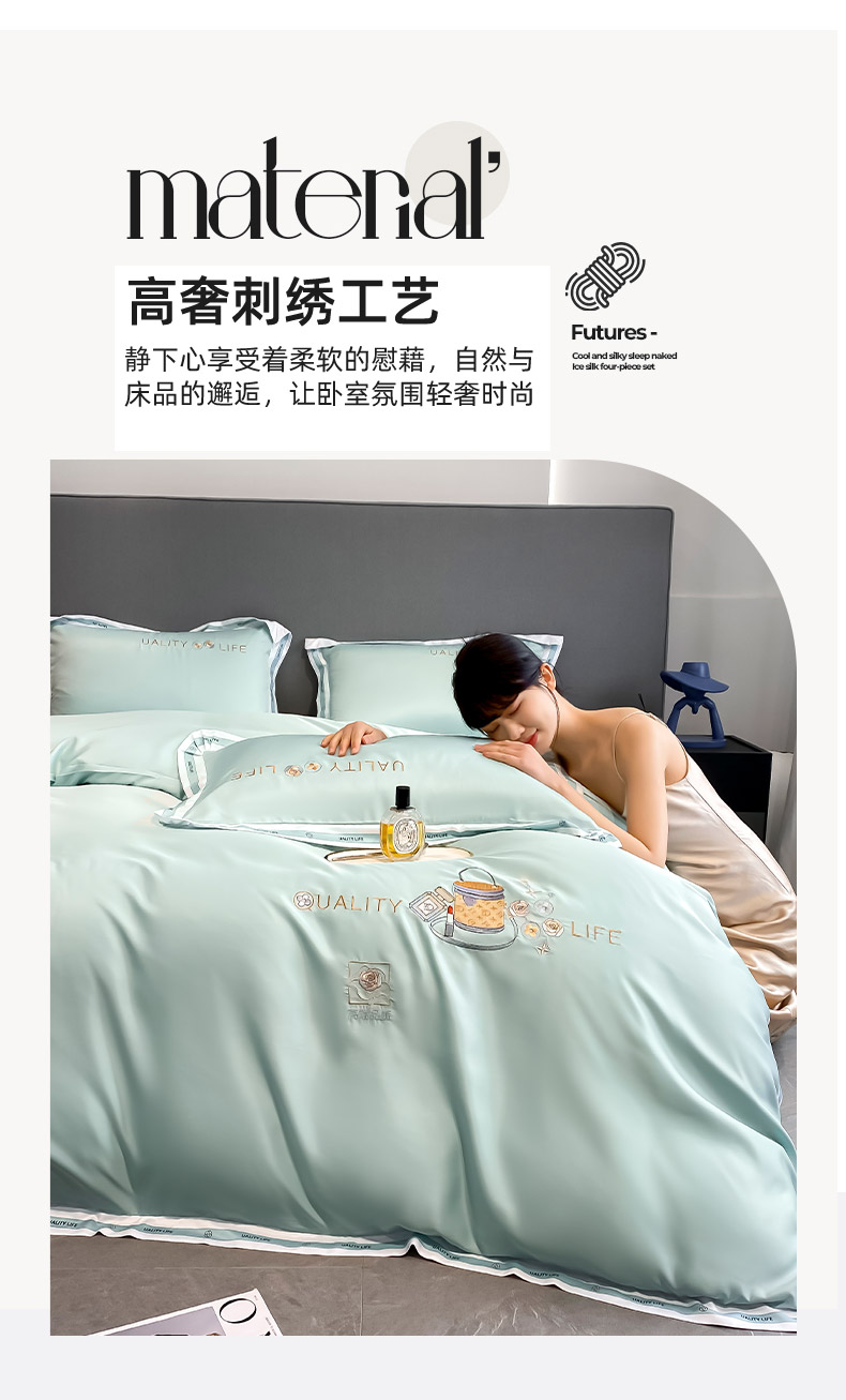 当前位置: 91家纺网 > 商品网购 > 床品套件 > 四件套 > 真丝四件套 > 绒世界 绒世界 2025新款大牌风60S水洗真丝刺绣床笠被套四件套香奈系列 香奈-白茶绿