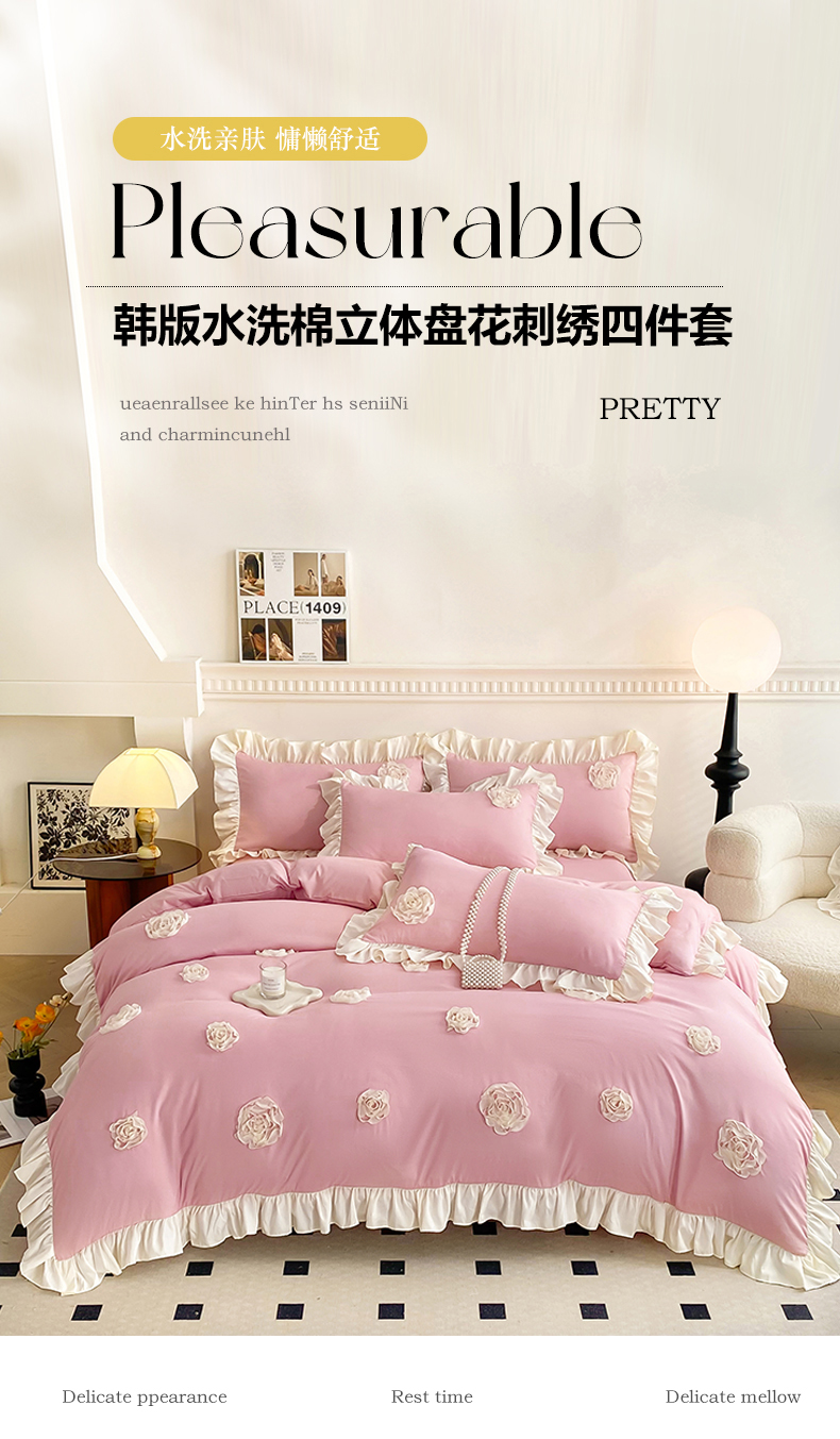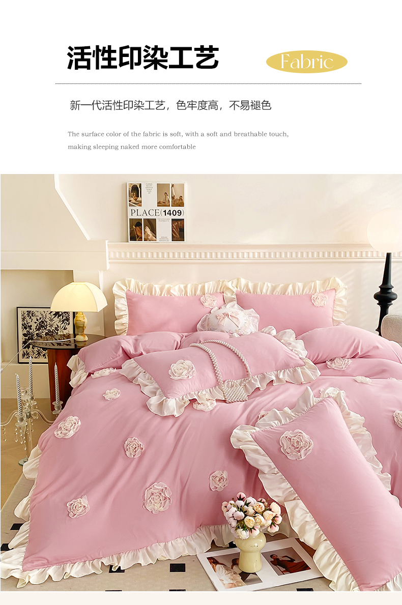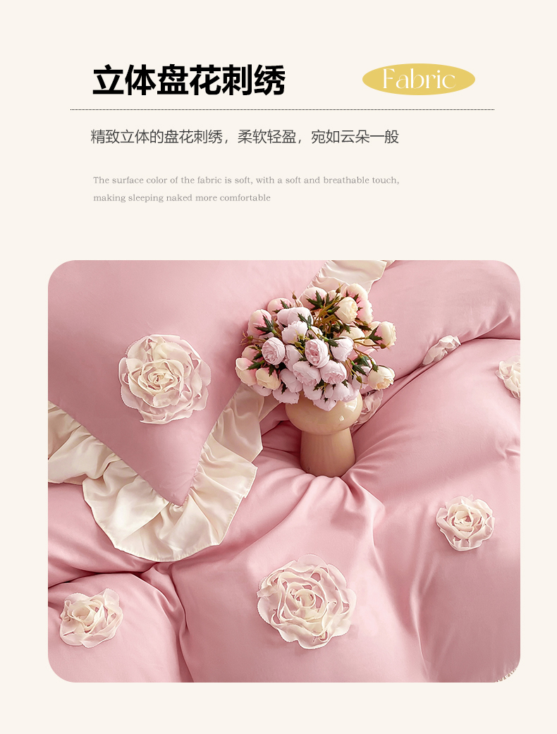 (总)富盛家纺 2024新款水洗亲肤棉立体盘花刺绣公主风四件套,伊莉莎—粉,伊莉莎—白,伊莉莎—紫,伊莉莎—黄,伊莉莎—浅绿,伊莉莎—蓝,伊莉莎—豆沙,伊莉莎—嫩绿