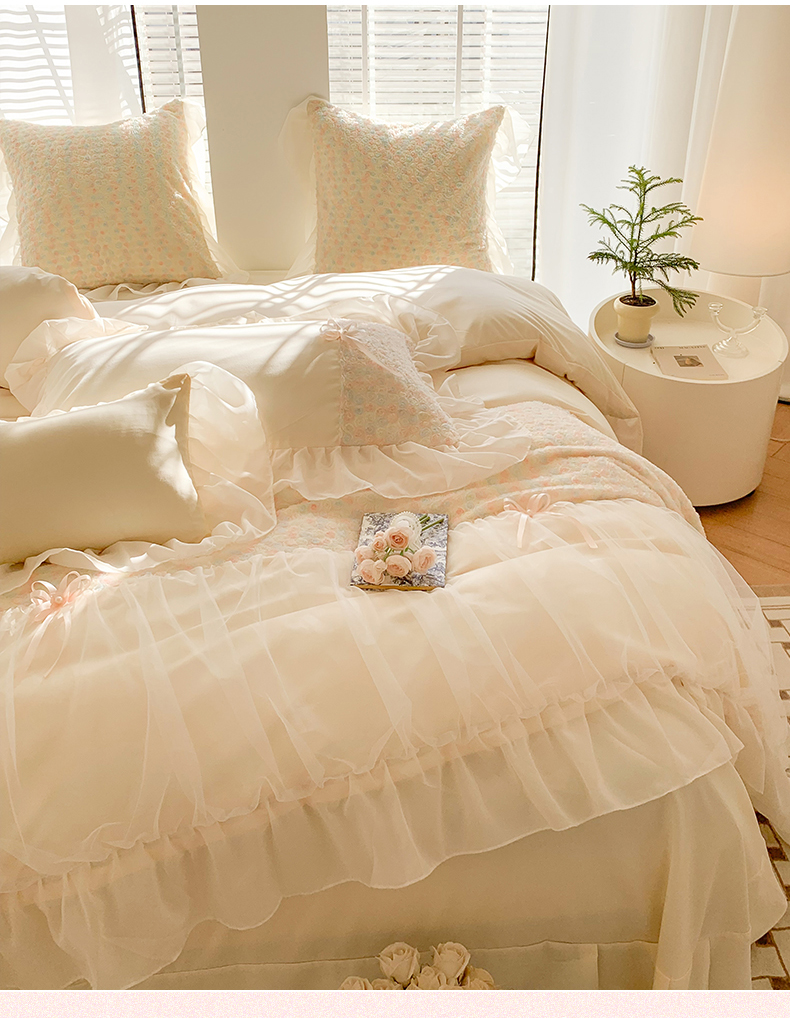 (总)吾欢心 2025新款公主风雪纺边四季通用夹棉床盖,床盖白,床盖粉,床盖黄,床盖咖,床盖绿,床盖抹茶绿,床盖紫