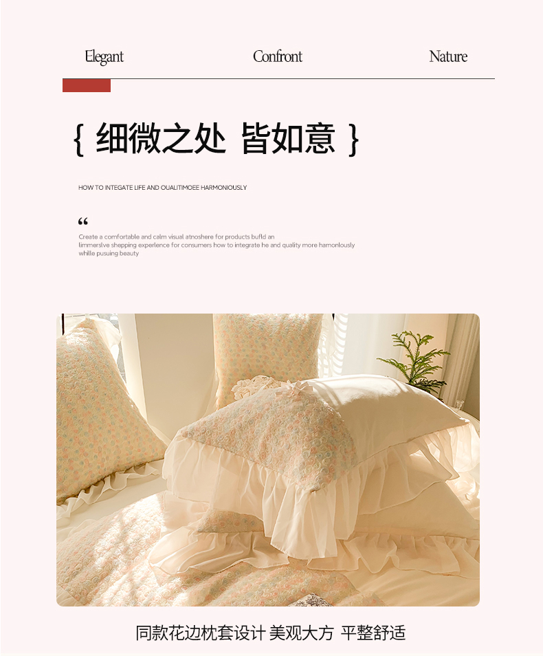 (总)吾欢心 2025秋冬新款加厚雕花绒婴儿绒安娜贝尔系列法式双层花边四件套,安娜贝尔白,安娜贝尔粉,安娜贝尔咖,安娜贝尔蓝,安娜贝尔绿,安娜贝尔紫