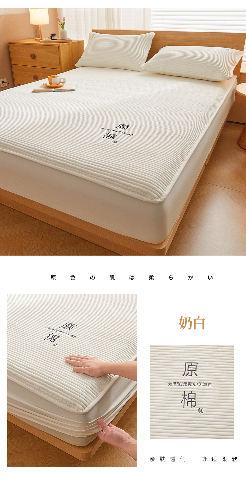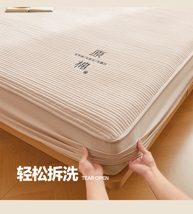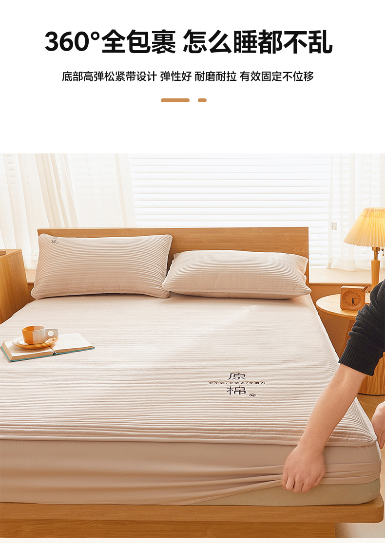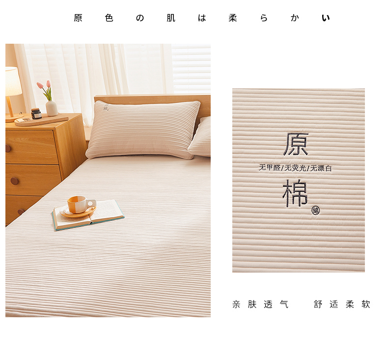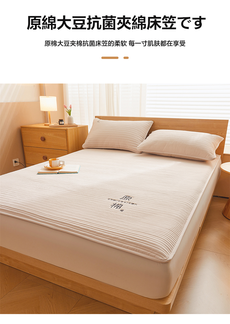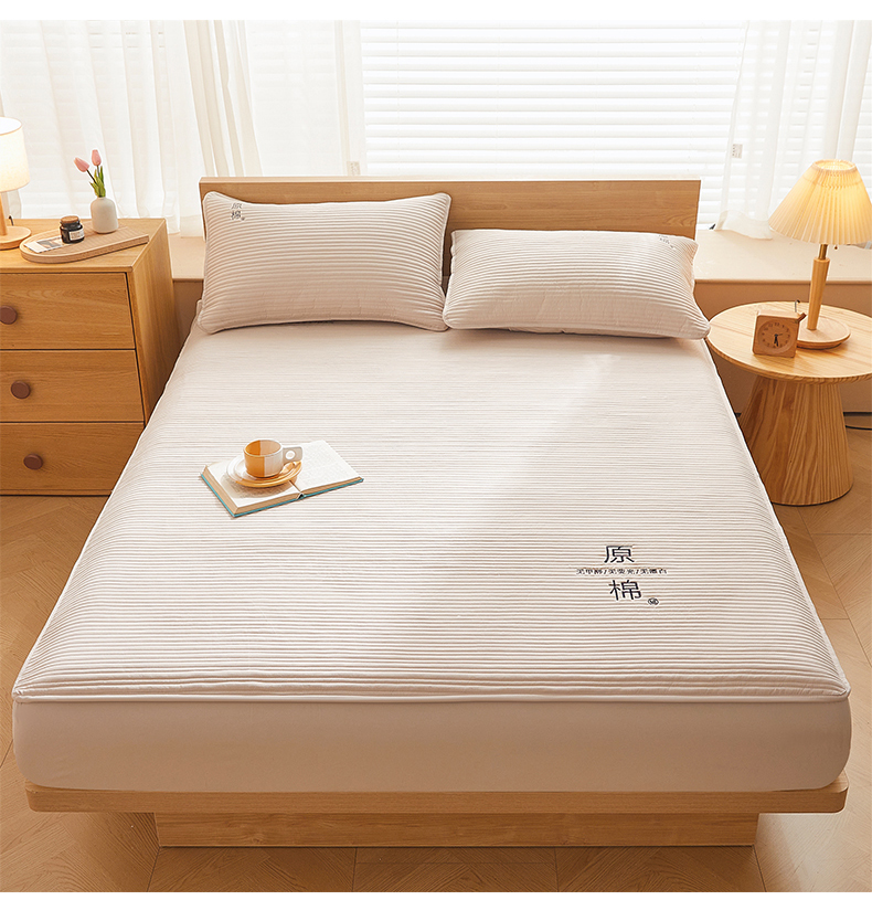 商品名称:(总)喜居 2024新款原棉大豆夹棉床笠三件套纯色床笠床垫保护套